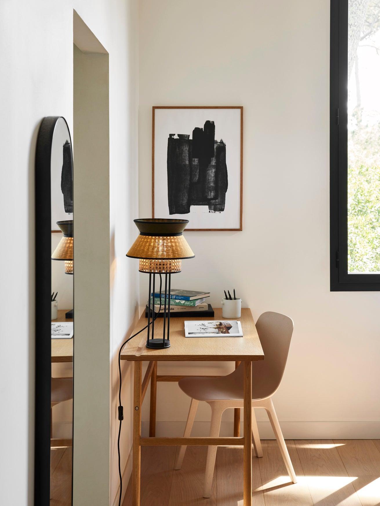 Lampa Singapour 1 v olivovej farbe, s tienidlom z praného ľanu a cukrovej trstiny a vybavená odnímateľným krytom na vrchu tienidla, textilným káblom a vypínačom, nie je len funkčné stolné osvetlenie, ale aj výrazný dekoratívny prvok, ktorý dodáva charakter každej miestnosti. Jej jedinečný dizajn a jemné svetlo skvele podčiarknu atmosféru v priestore.