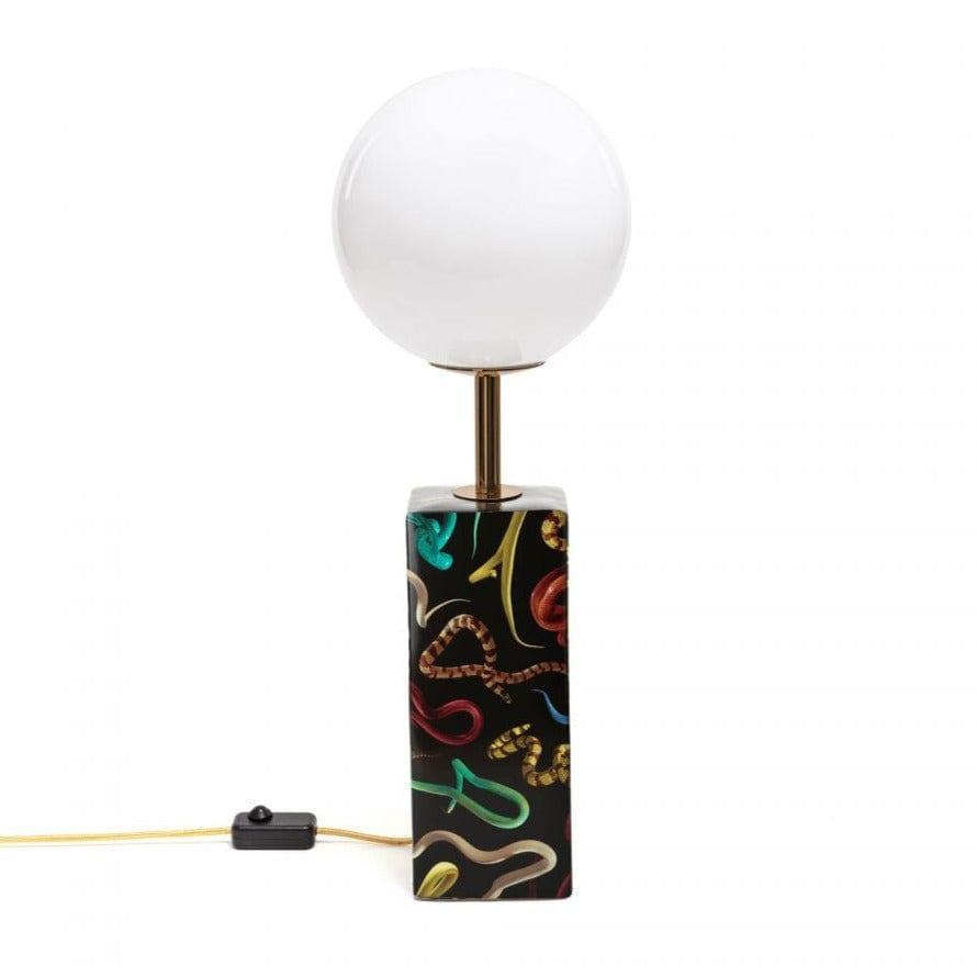 Stolná lampa Snakes odkazuje na bláznivé 60. roky. Navrhnutá talianskym kráľom avantgardy — Seletti, ako brána do inej, surrealistickej dimenzie, dodá interiéru jedinečný charakter. Základňa vyrobená z porcelánu, plná dynamiky v farbách a mierne kontroverzný koláž vytvárajú originálne umelecké dielo.