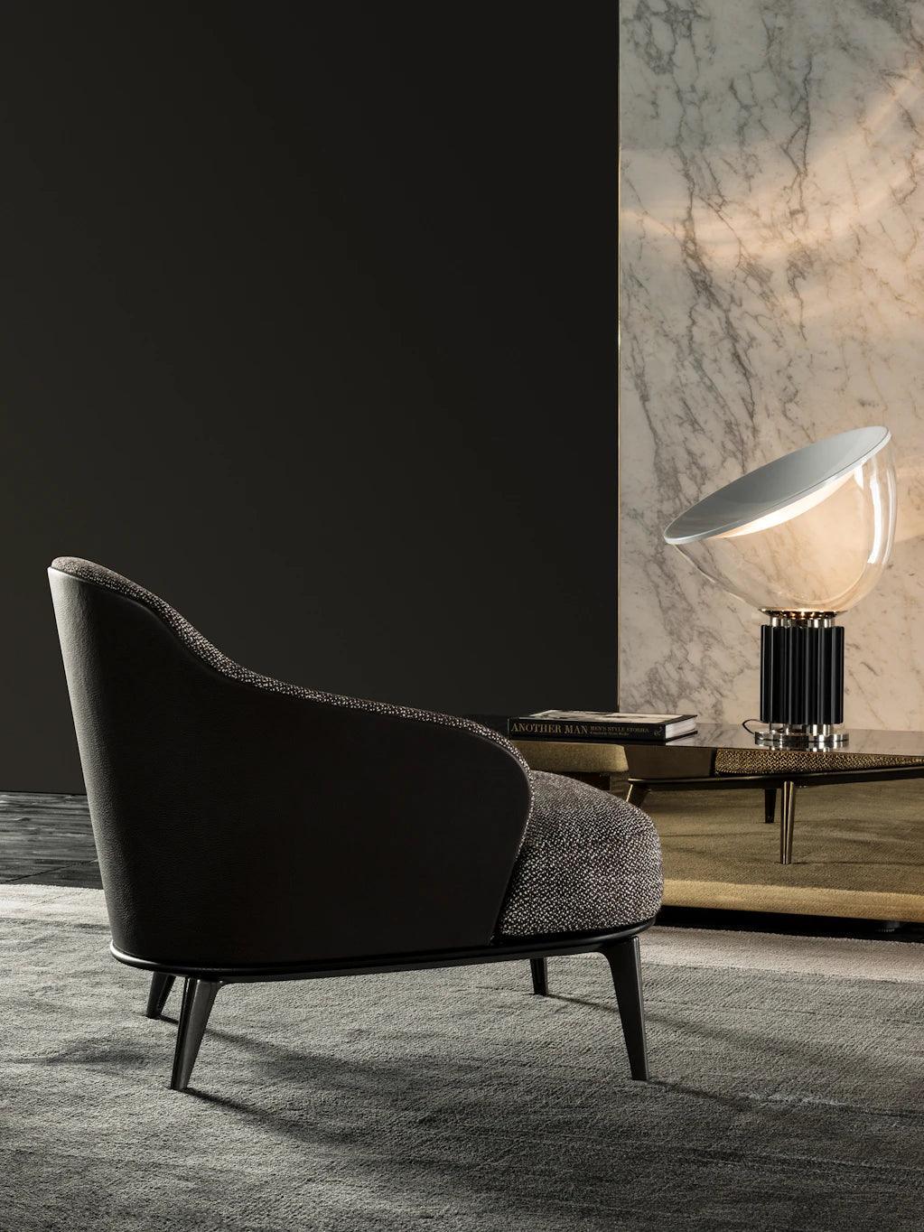 Stolná lampa Taccia je príklad nadčasového dizajnu, ktorý spája funkčnosť s umeleckým prístupom k forme. Poskytuje nepriamu a odrazenú svetlosť, čím vytvára jemnú a príjemnú atmosféru v interiéri. Charakteristický reflektor z natieraného hliníka je lesklý zvonku a matný vo vnútri, čo umožňuje optimálne rozptýlenie svetla. Difúzor vyrobený z priehľadného, fúkaného skla a telo z čierneho eloxovaného hliníka dodávajú celku modernú eleganciu. Stabilný podstavec z niklovaného kovu dopĺňa celkovú kompozíciu.