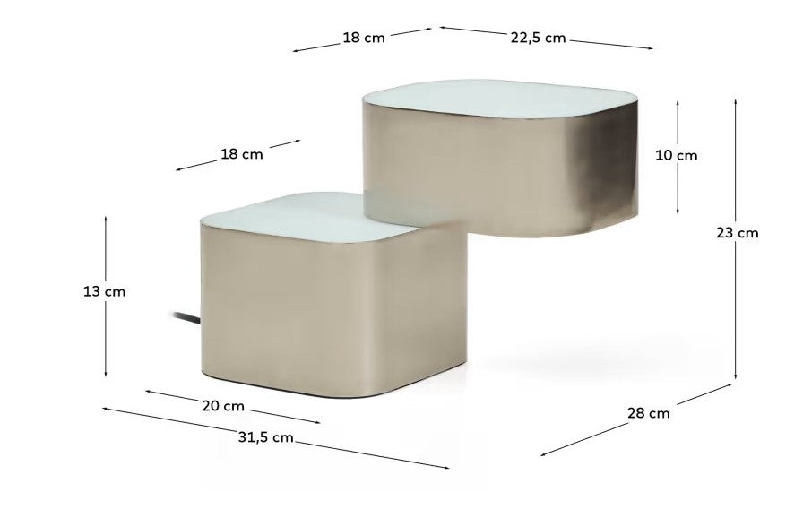 Pozdvihnite svoje interiér na vyššiu úroveň štýlu s stolnou lampou Tandan – vyrobenou z šedého kovu s brúseným povrchom. Tento model sa vyznačuje modernou formou, kde asymetrická kompozícia jemne pripomína používané objemy, čím dodáva celku dynamický, ale zároveň vyvážený charakter. Vďaka polopriehľadným skleneným difúzorom svetlo vyžaruje jemne a mäkko, čo robí stolnú lampu Tandan ideálnou voľbou do obývačky, spálne alebo kancelárie – miesta, kde je prioritou atmosféra pokoja a elegancie.