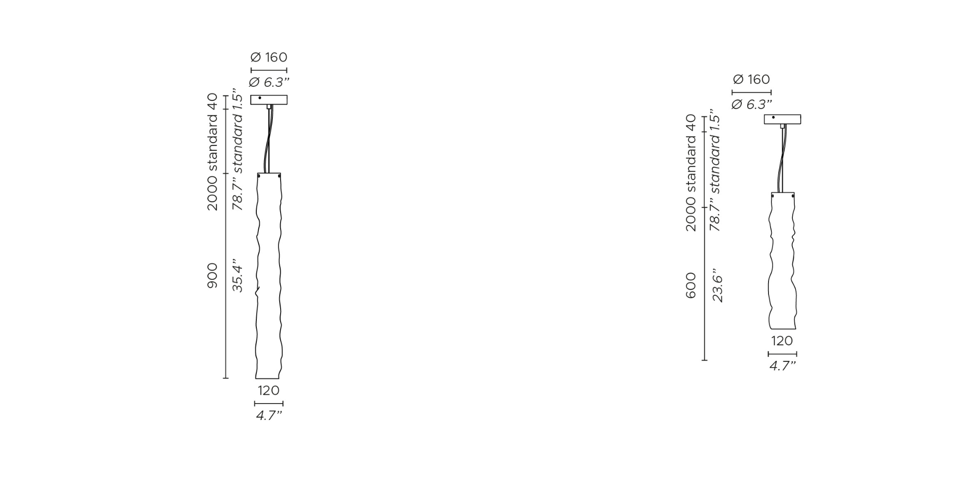 Wysokość klosza: 60/90 cm