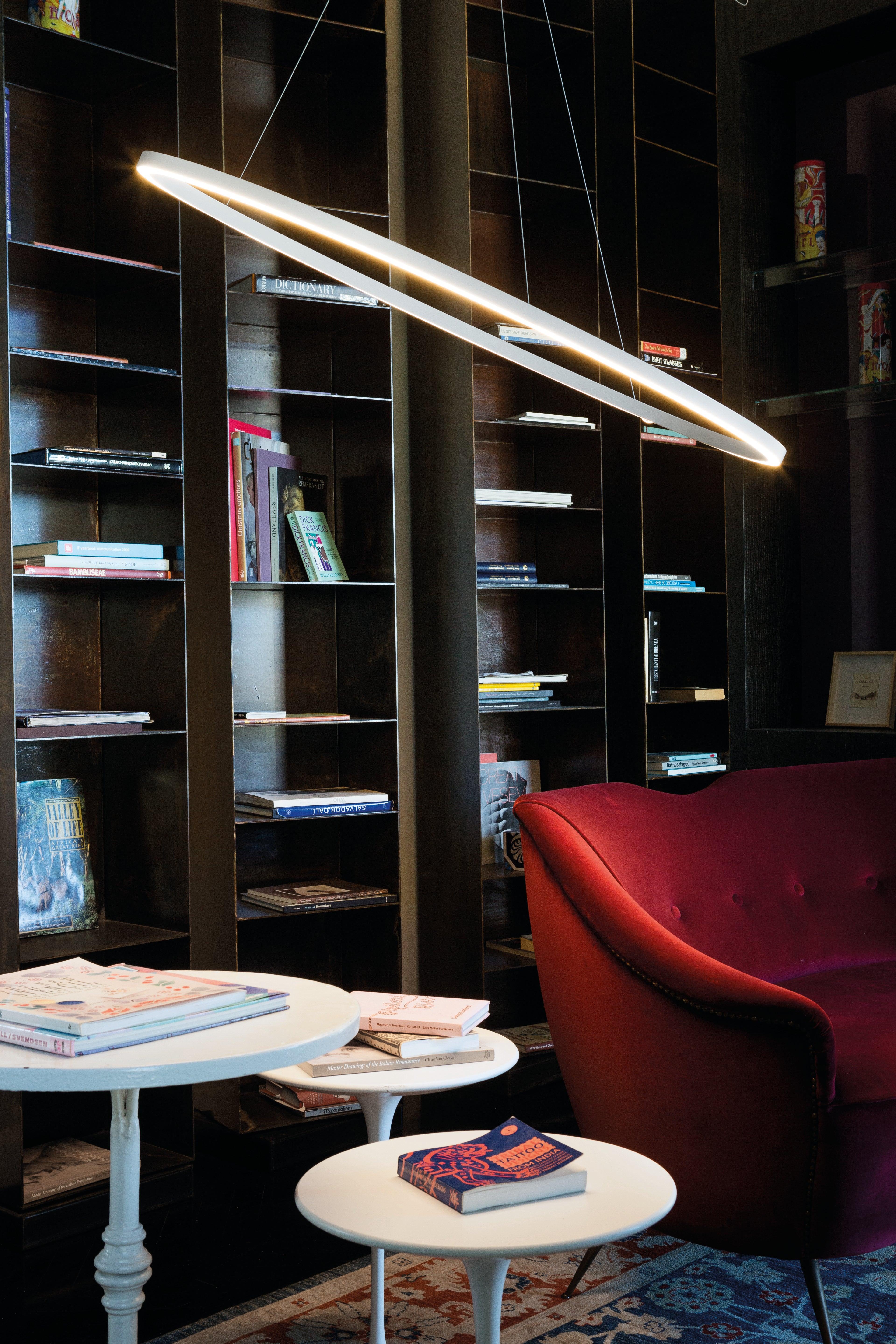 Závesná lampa Ellisse Minor, vytvorená s využitím inovatívnej technológie vyvinutej spoločnosťou Nemo na spájanie prvkov, ponúka rozptýlené svetlo ako priame, tak aj nepriame, vďaka LED diódam zabudovaným v jej konštrukcii. Táto lampa sa vyznačuje lineárnym a moderným dizajnom, ktorý sa dokonale hodí do súčasných interiérov. Ellisse Minor je elegantná závesná lampa, ktorá harmonicky spája funkčnosť s estetikou.