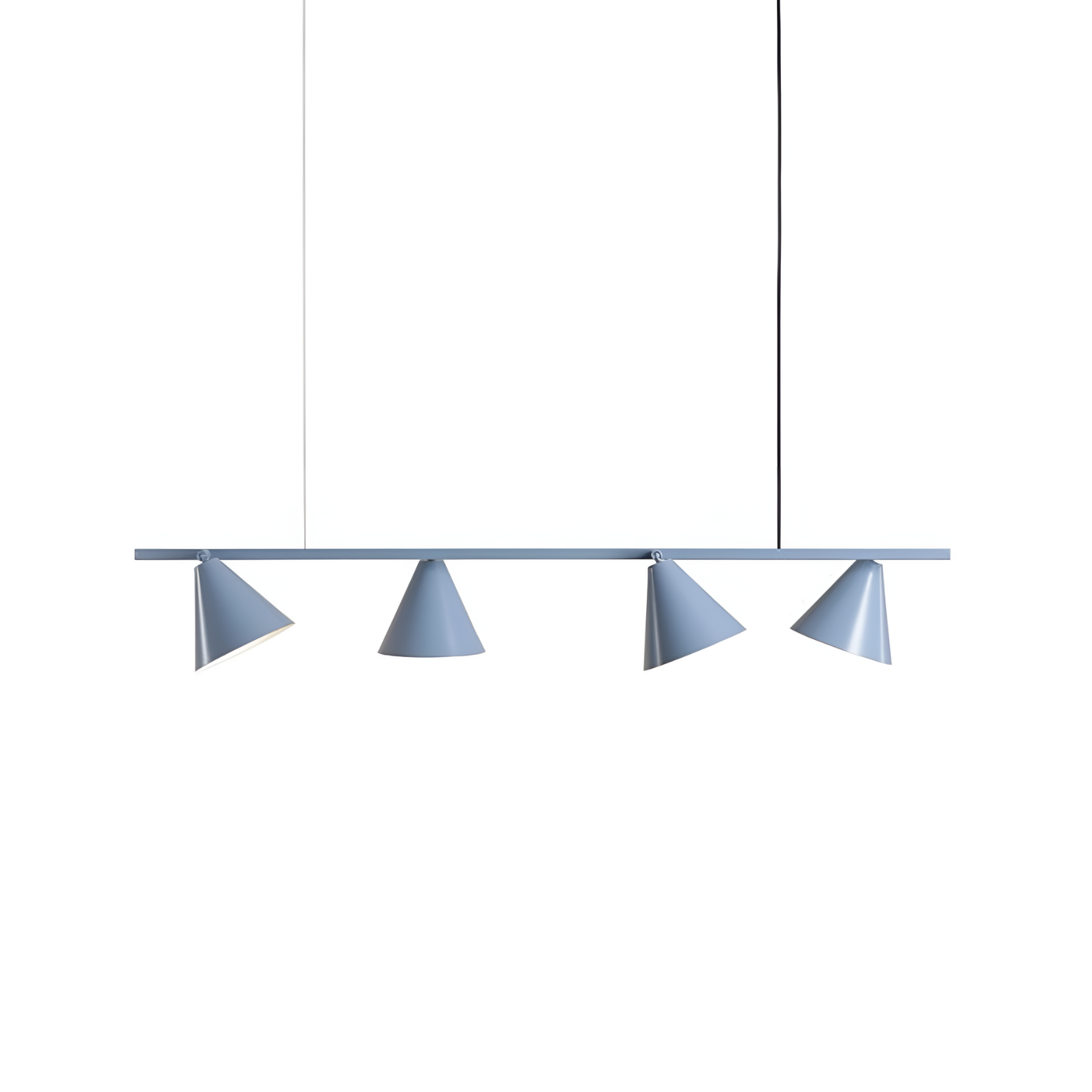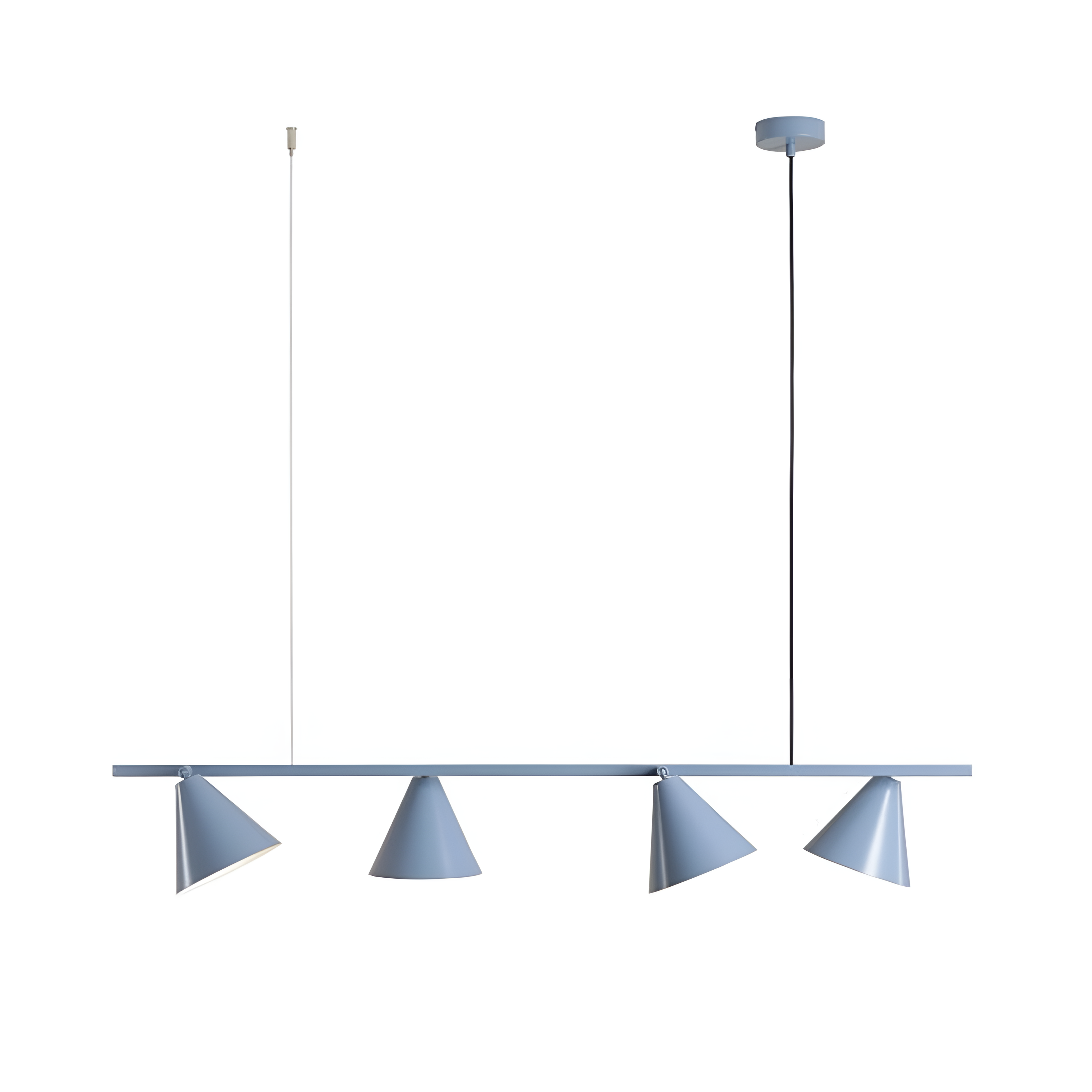 Závesná lampa Form Quatro je moderný návrh osvetlenia, ktorý očarí minimalistickým dizajnom a funkčnosťou. Štyri kužeľovité tienidlá umiestnené na dlhom ramene je možné nastaviť podľa potreby vďaka kĺbom, čo umožňuje presne nasmerovať svetlo na vybrané miesto – nad stolom, písacím stolom alebo kuchynským ostrovom. Kovová konštrukcia lampy zabezpečuje jej trvácnosť, a tienidlá účinne odrážajú svetlo, čím zabezpečujú dobré osvetlenie interiéru.