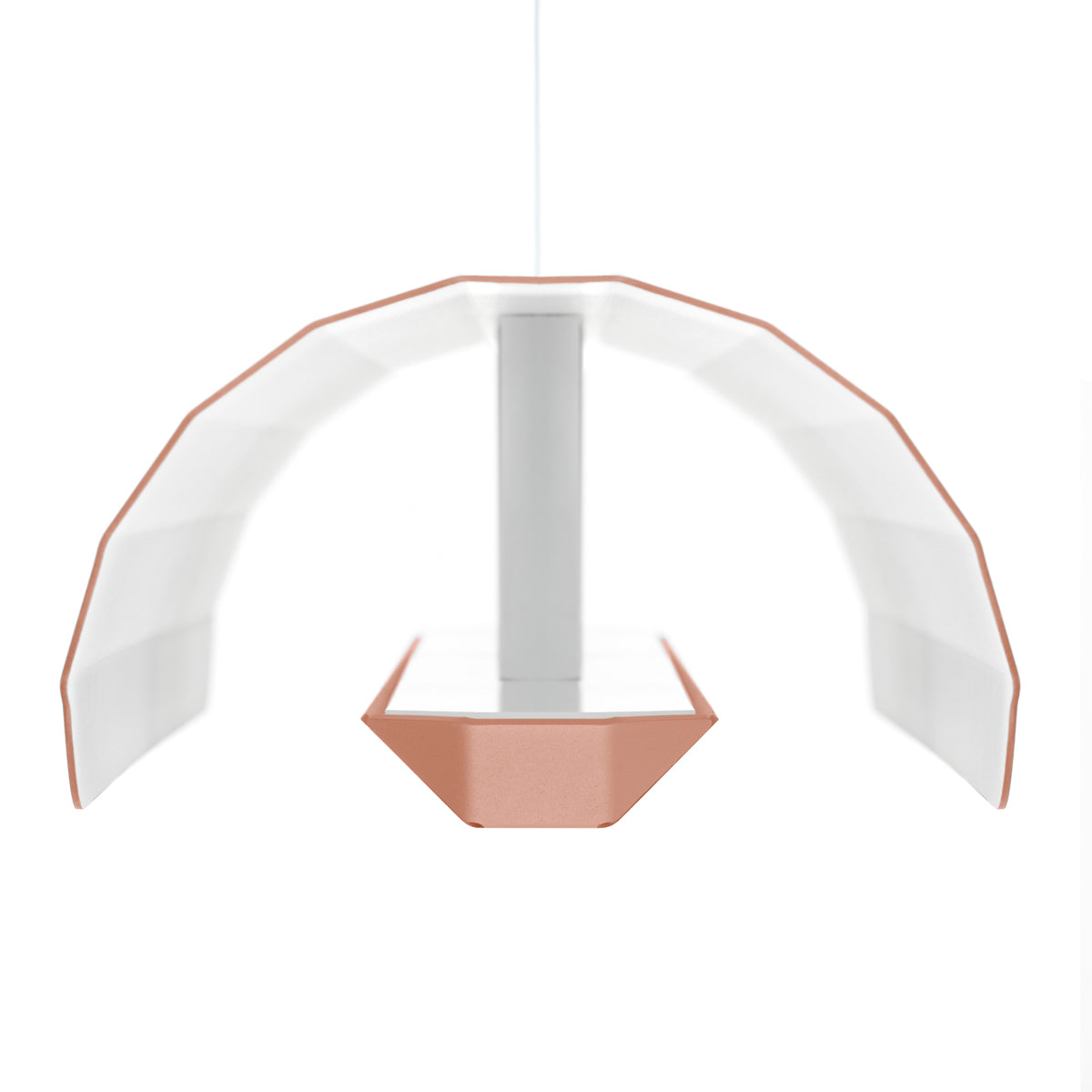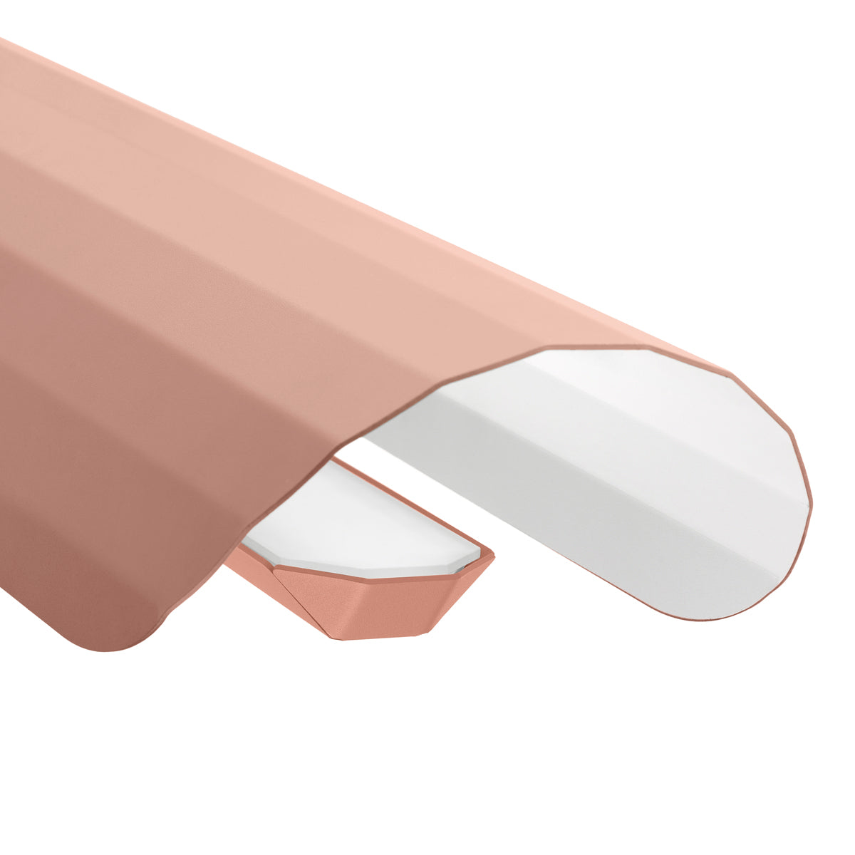 Závesná lampa Apolin od dizajnérov Grynasz Studio je jemný, no výrazný návrh lineárneho osvetlenia, ktorý sa skvele hodí do moderných a nadčasových interiérov. Inšpirovaná industriálnou estetikou 50. – 70. rokov 20. storočia, lampa sa vyznačuje jemne zaobleným, fasetovým tienidlom vyrobeným z profilovanej nehrdzavejúcej ocele, ktorá je z vonkajšej strany lakovaná práškovou farbou v odtieni zlomeného ružového a z vnútornej strany biela. Vďaka tomu si zachováva vizuálnu ľahkosť napriek kovovej konštrukcii.
