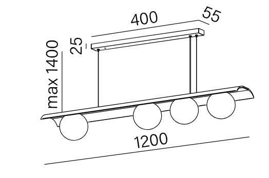 Lampa wisząca Modern Ball Asymmetry x4 to efektowna kompozycja czterech kul osadzonych na subtelnie wygiętej oprawie. Ten nowoczesny design doskonale sprawdzi się nad stołem w jadalni, wyspą kuchenną lub w przestrzeni komercyjnej, tworząc elegancki i przyciągający uwagę punkt świetlny. Lampa oferuje wysoką jakość światła dzięki zintegrowanemu źródłu LED o bardzo dobrym odwzorowaniu barw (CRI>90).