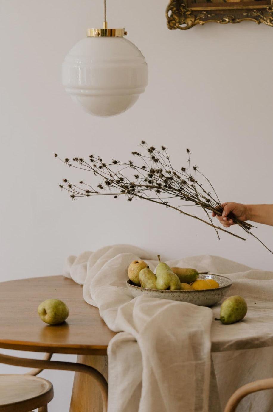 Mlecznobiały kolor szkła podkreśla dostojną klasykę pomieszczeń. Mosiężna lampa Saturn świetnie zatem się sprawdzi tam, gdzie króluje dyscyplina przestrzenna i geometria.