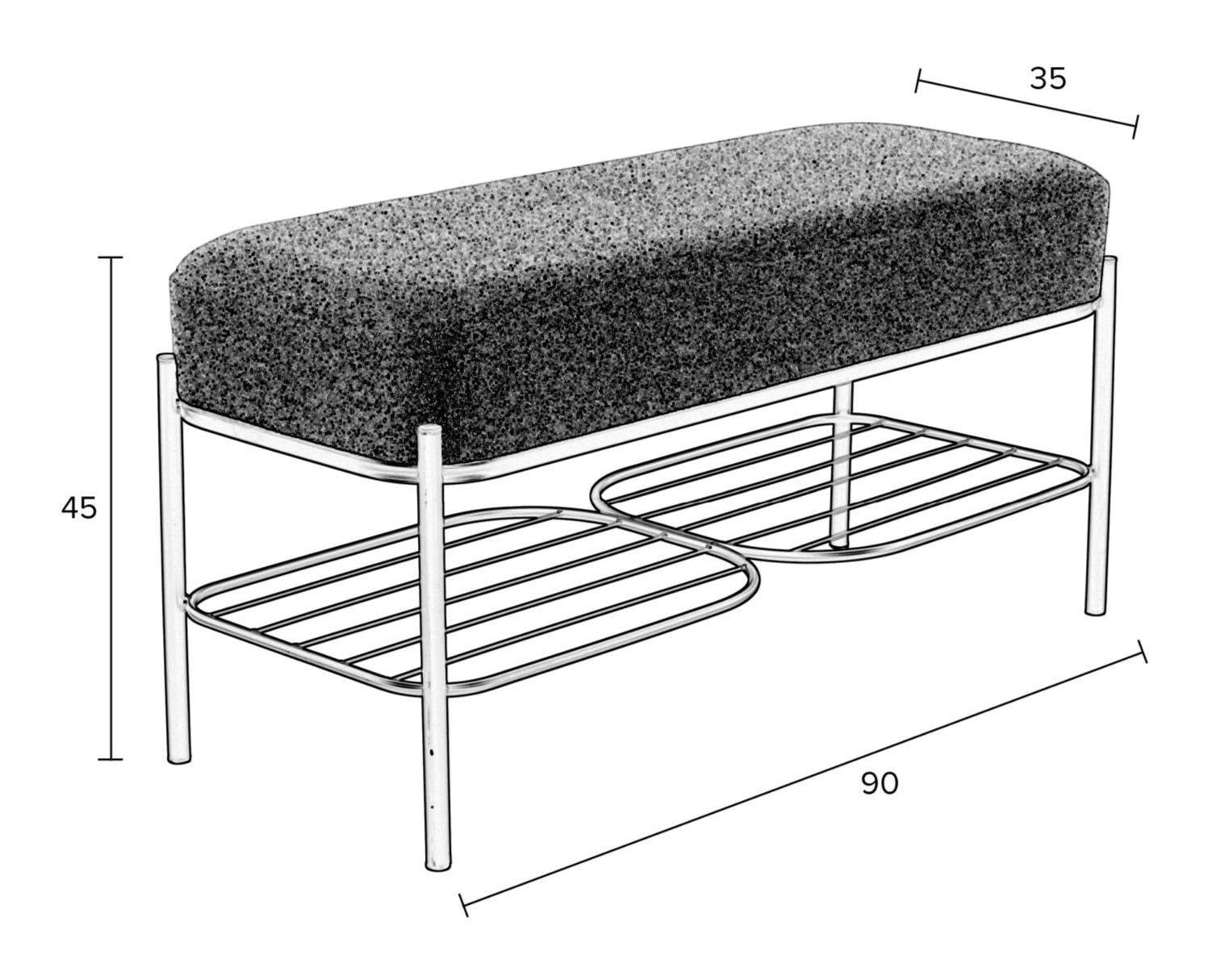 Lavica Milou je elegantný a výnimočný návrh do domáceho interiéru. Ohromuje svojím originálnym dizajnom, ktorý aj napriek jednoduchosti dokáže zmeniť charakter súčasného priestoru. Ideálna pre tých, ktorí si cenia netradičné riešenia, Milou sa skladá z obdĺžnikového, vysokého sedadla pokrytého svetlosivou tkaninou. Sedadlo podporuje kovový rám s ďalšími poličkami v podobe tenkých tyčí.