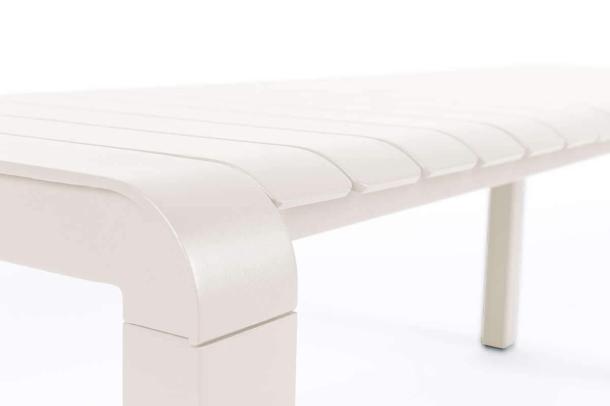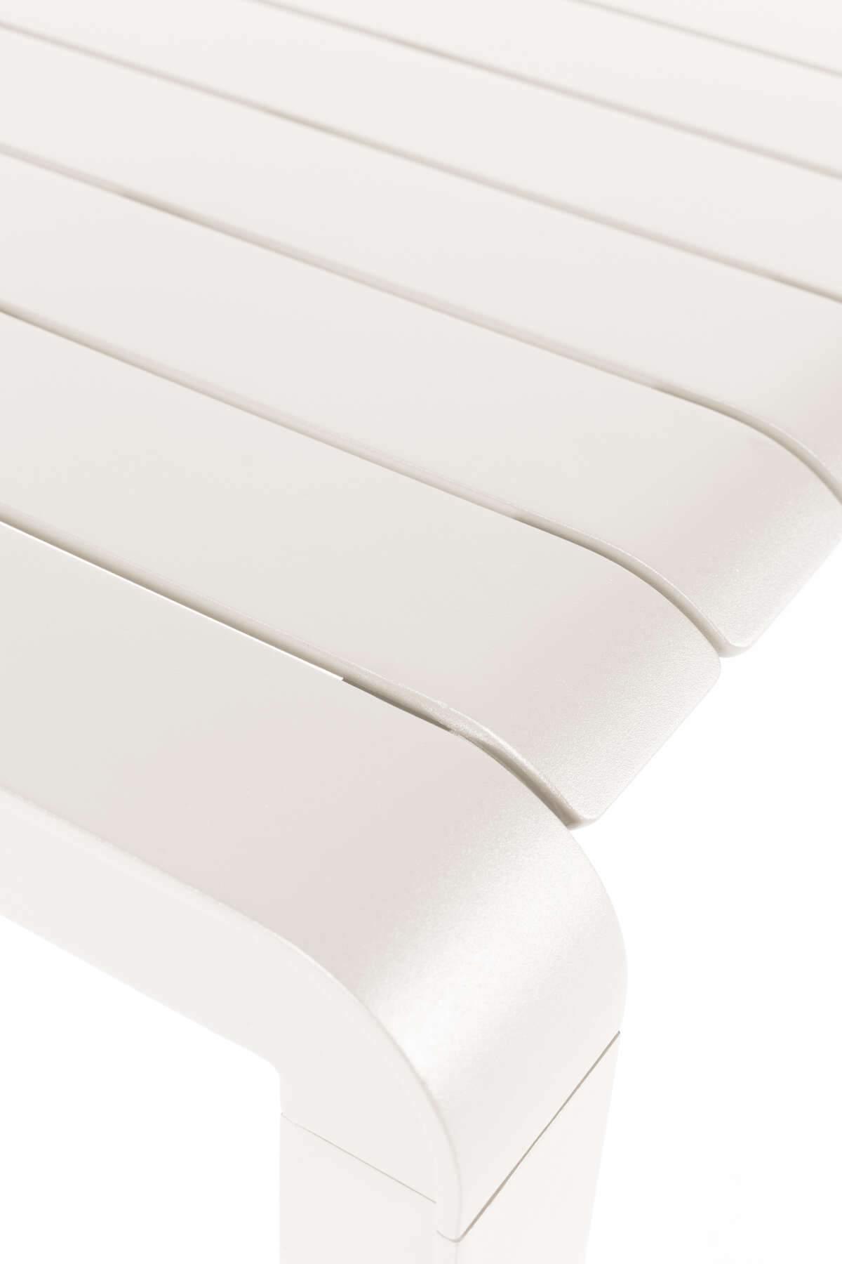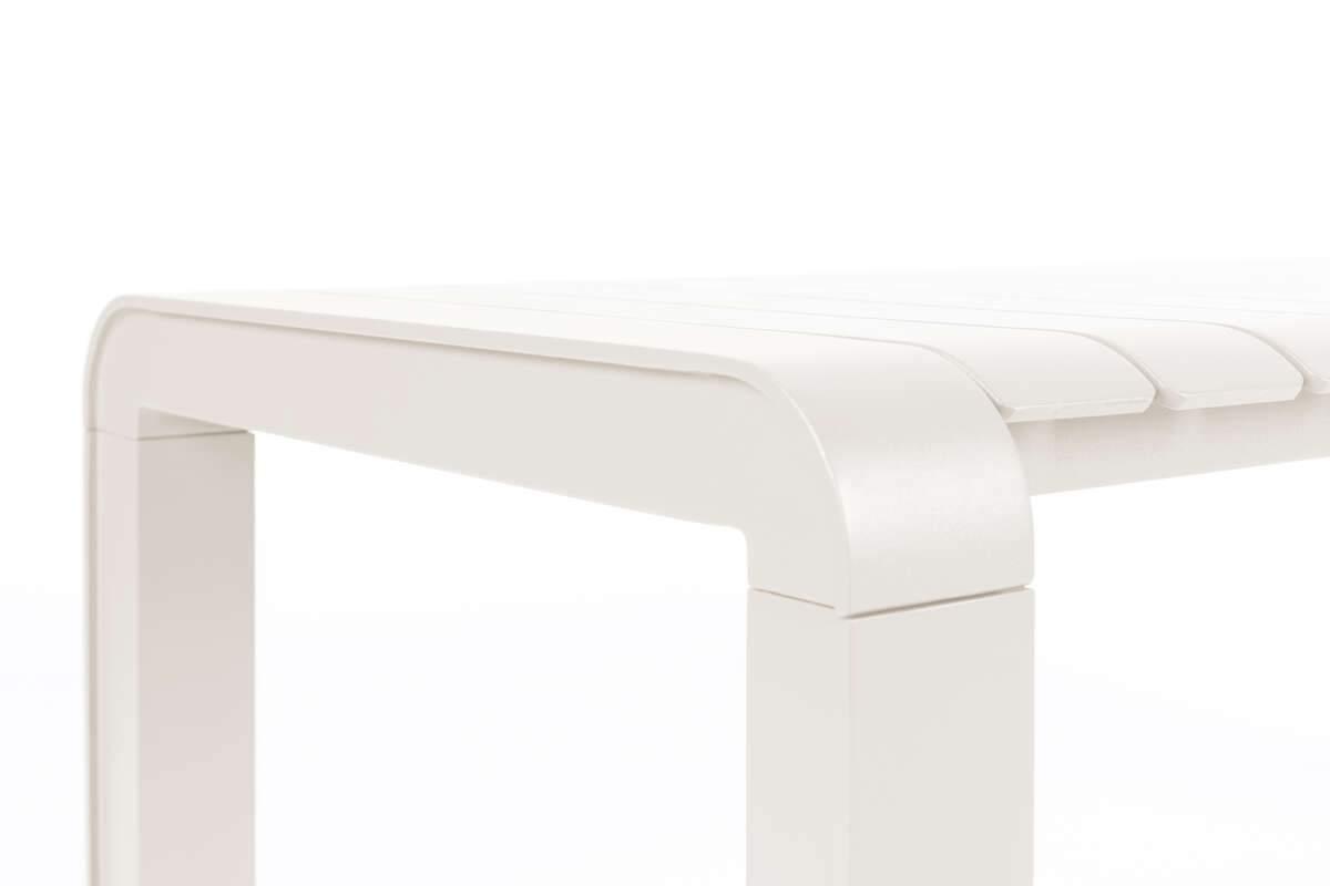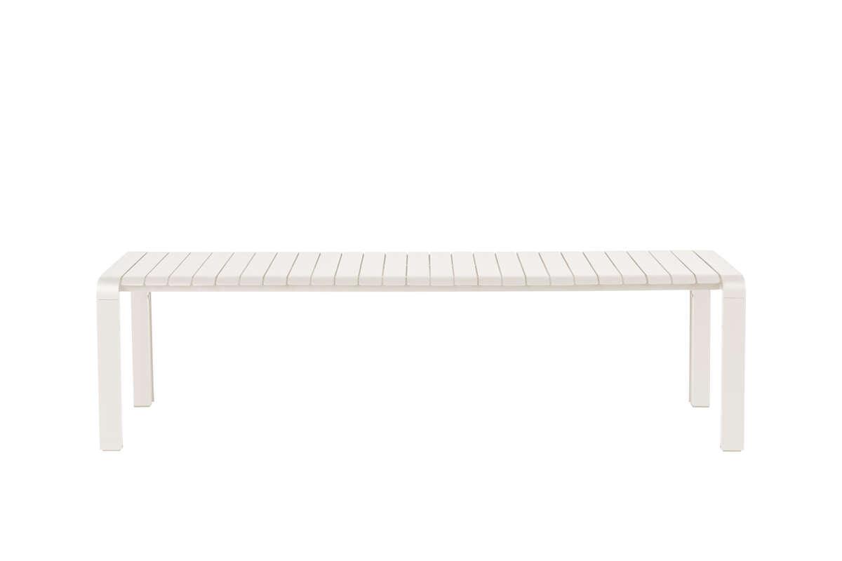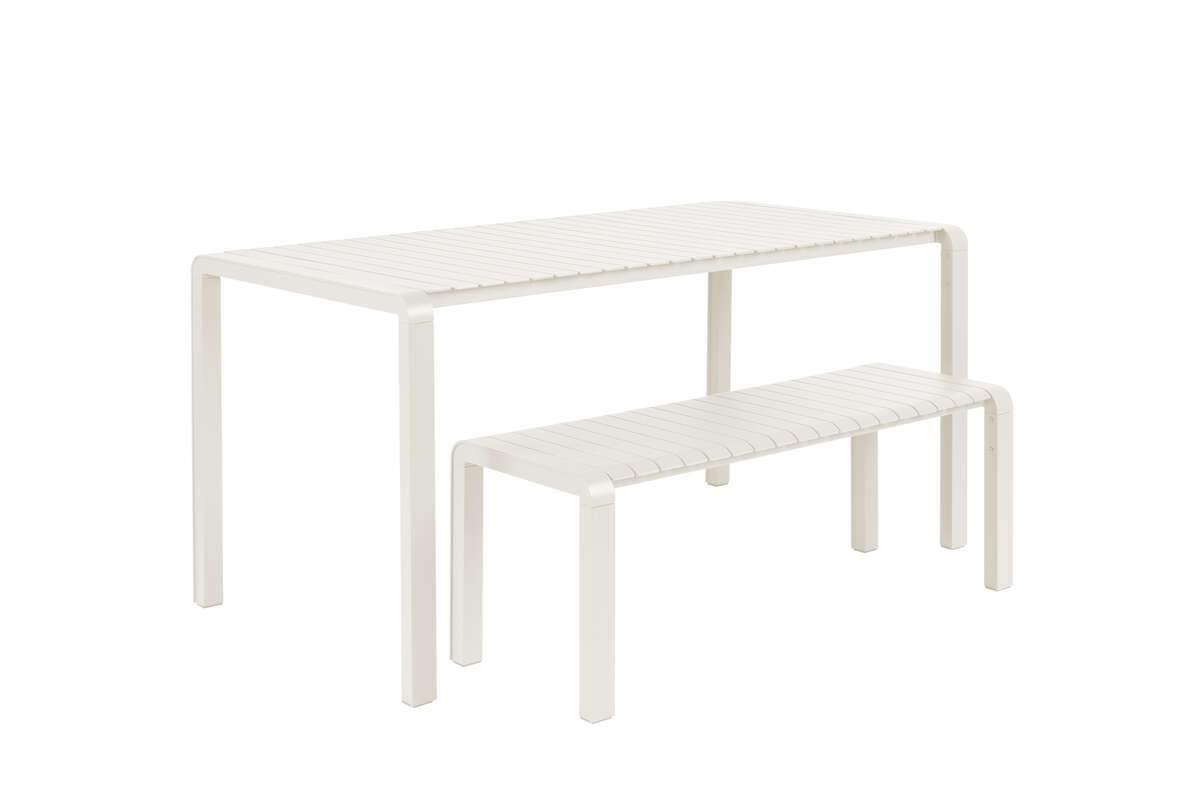 Vondel to nowoczesna ławka ogrodowa wykonana ze stali malowanej proszkowo na kolor biały. Będzie idealnym dodatkiem do stołu z tej samej kolekcji. Sprawdzi się jako miejsce do relaksu na tarasie czy w ogrodzie. Jest odporna na zmienne warunki atmosferyczne.