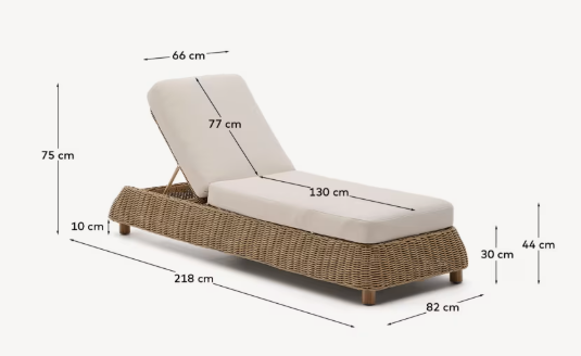 Meria je elegantné ležadlo, ktoré spája komfort a trvácnosť, vďaka ručne pletenému syntetickému ratanu. Tento materiál dokonale imituje prírodný prút, pričom poskytuje odolnosť voči poveternostným podmienkam a jednoduchú údržbu. Jeho zaoblené tvary a hladké línie mu dodávajú jemnú eleganciu, vďaka čomu sa skvele hodí do každého priestoru – či už vo vnútri, alebo vonku.