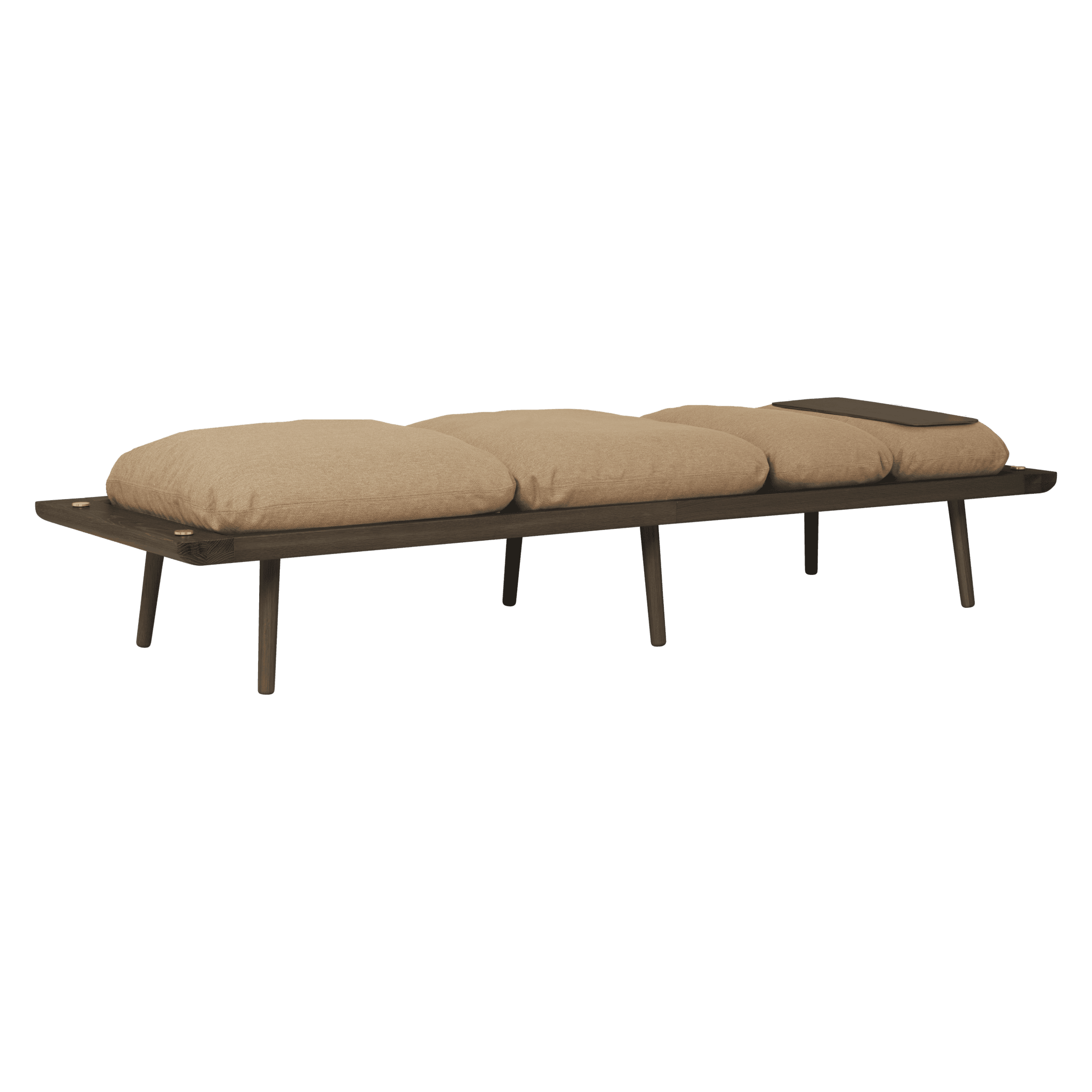 Dodatkowo leżanka, ze względu na swoją uniwersalność, idealnie nadaje się także do zastosowania w domkach letniskowych lub hotelach. Jedna z wąskich poduszek siedziskowych ma na odwrocie cienką tackę, która umożliwia wygodne odłożenie kawy lub laptopa, co dodatkowo zwiększa funkcjonalność tego mebla.