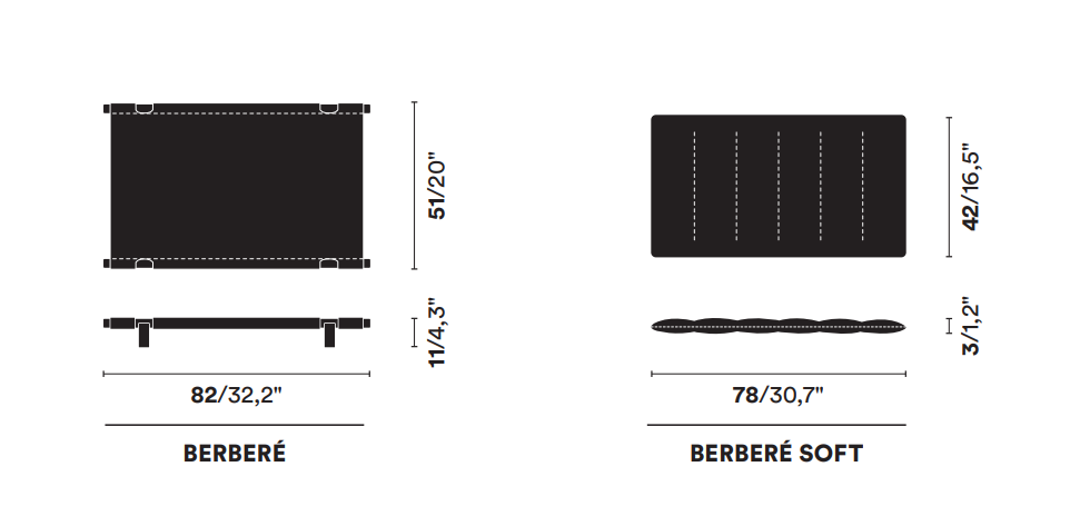 Berbere je výnimočný pelech, navrhnutý s ohľadom na milovníkov dizajnu a štvornohých priateľov. Mobilný, štýlový a pevný – ideálny nielen do domácnosti, ale aj na cesty. Konštrukcia z masívneho jaseňového dreva sa spája s visiacou podložkou vyrobenou z prírodnej kože s vodoodolným povrchom. Ručný montážny systém bez použitia skrutiek a lepidla umožňuje rýchle zloženie a prepravu – všetko sa zmestí do priloženej tašky.