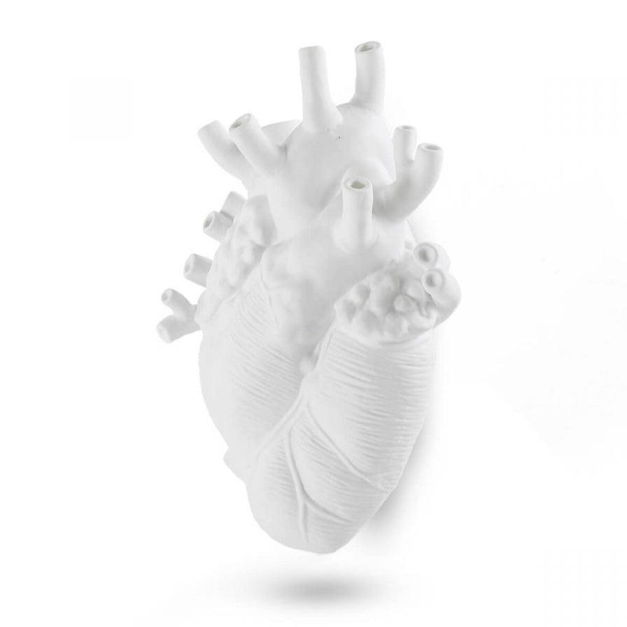 Love in Bloom to odważny wazon w kształcie serca, który wygląda, jakby pochodził z podręczników anatomii człowieka. Nowoczesna miłość przełożona na romantyczny, ale nieprzewidywalny format. To nie sen, to nie wiosna, to miłości w rozkwicie. Wazon wykonano w całości z eleganckiej, białej porcelany.