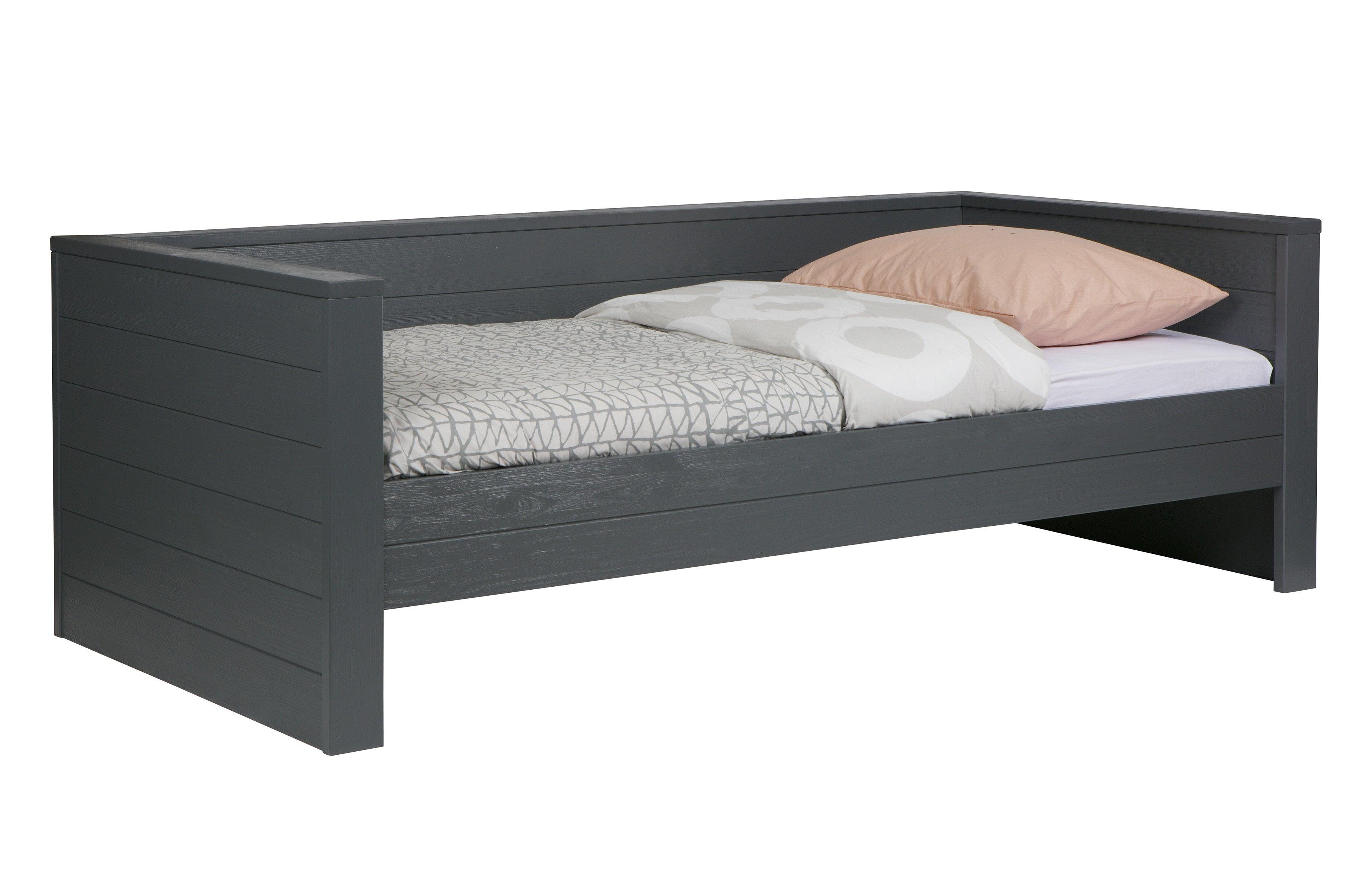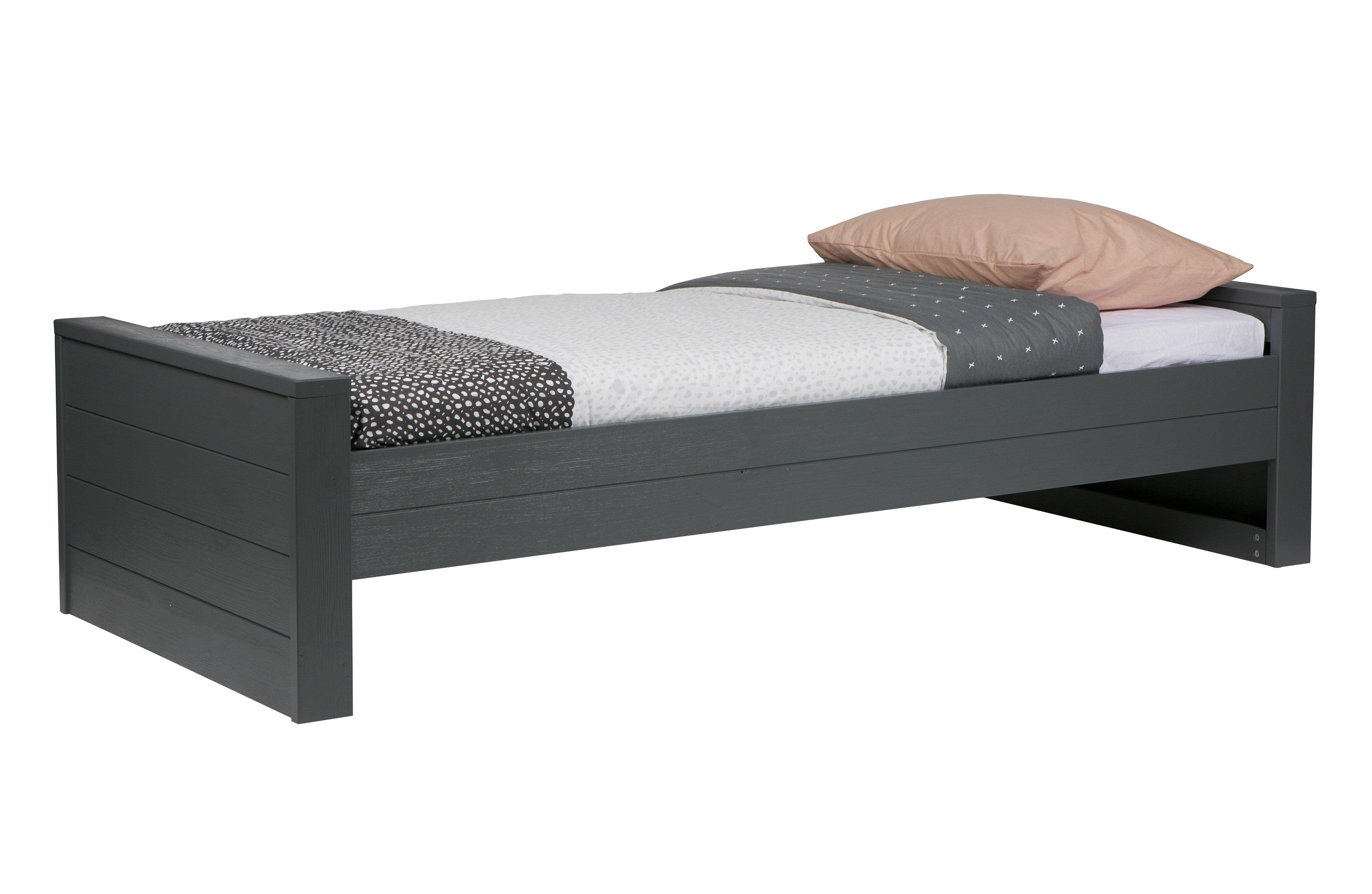 Posteľ Dennis v grafitovej farbe je ideálnou kombináciou jednoduchosti, funkčnosti a škandinávskeho štýlu. Vďaka svojim kompaktným rozmerom sa skvele hodí do menších priestorov, pričom im dodáva ľahkosť a nádych sviežosti. Posteľ je vyrobená z kvalitného dreva, ktoré zaručuje odolnosť.