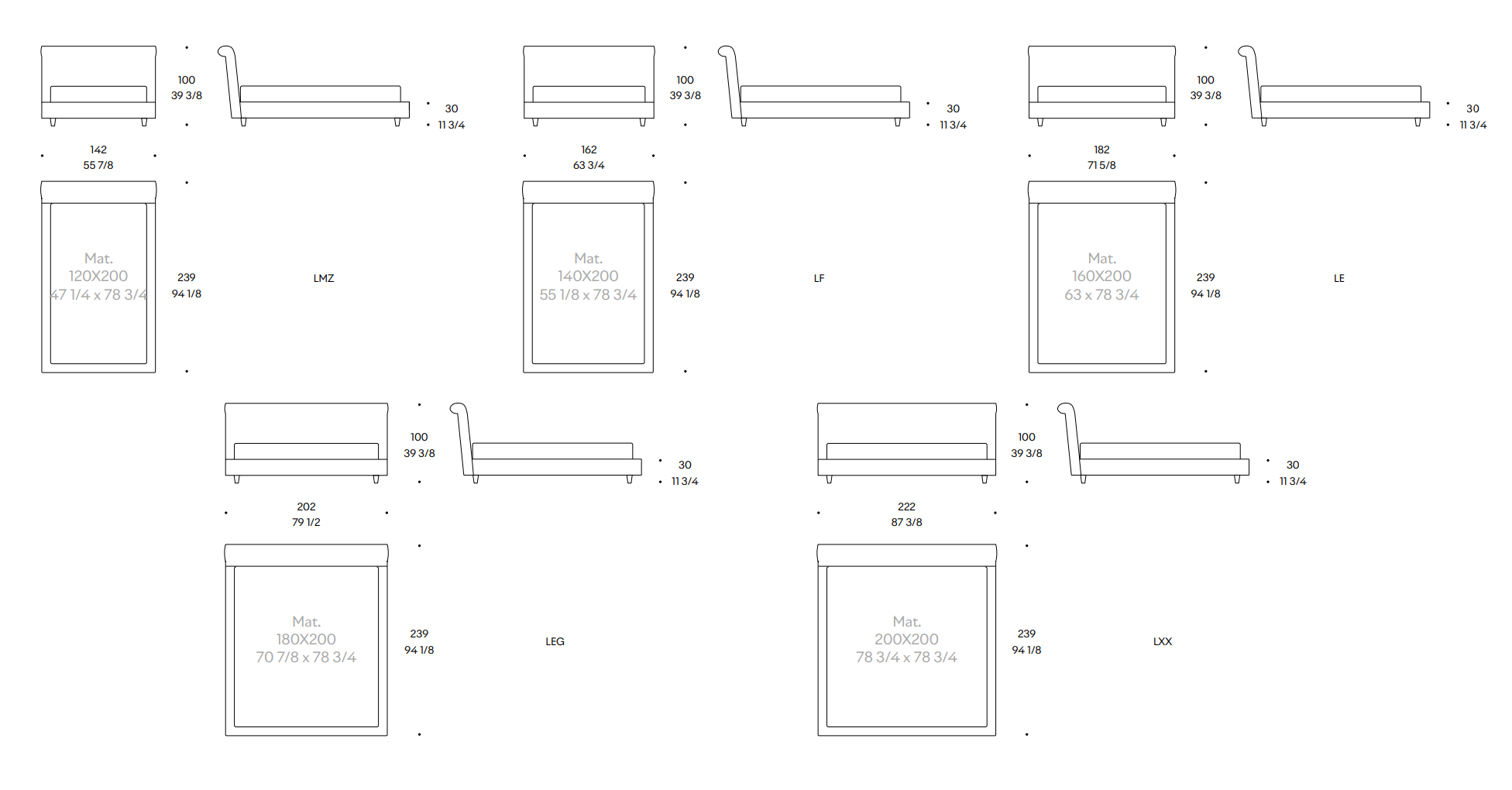 Powierzchnia spania: 120x200, 140x200, 160x200, 180x200, 200x200 cm