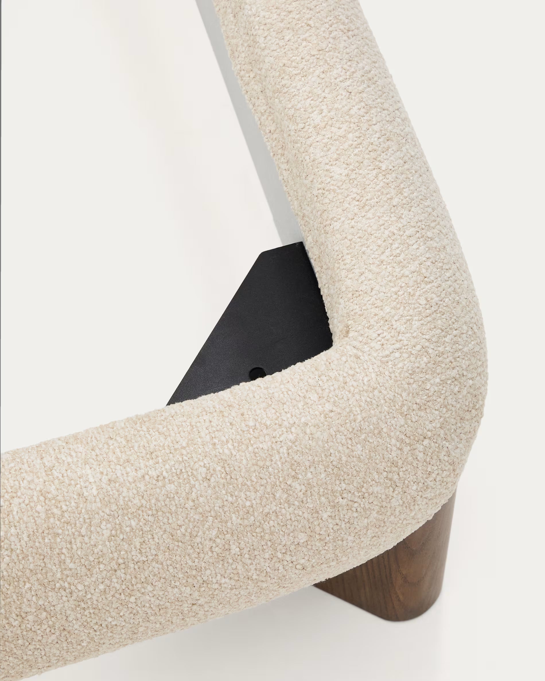 Materiały: rama z drewna jesionowego i pianki, tkanina bouclé 100% poliester, nogi z litego jesionu