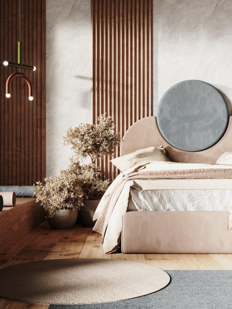 Tento úžasný projekt Kataríny Jasyk je esenciou modernej elegancie. Posteľ je vyrobená z príjemnej na dotyk a odolnej zamatovej tkaniny. Výnimočné čelo, ktoré dodá spálni originálny charakter, pripomína krajinu zapadajúceho slnka. Keď sa ráno prebudíte v takej výnimočnej aranžmáne, deň sa okamžite stane krajším.