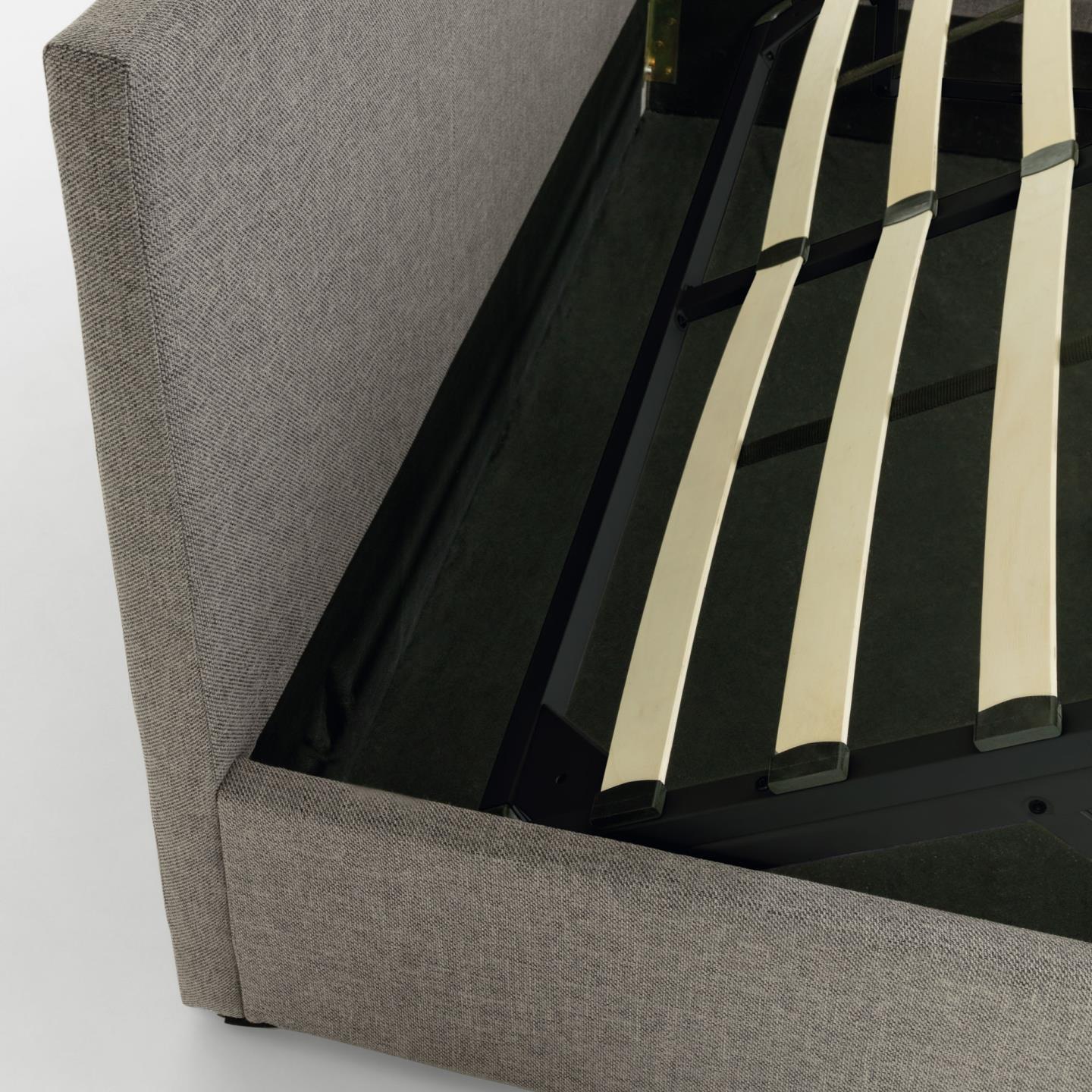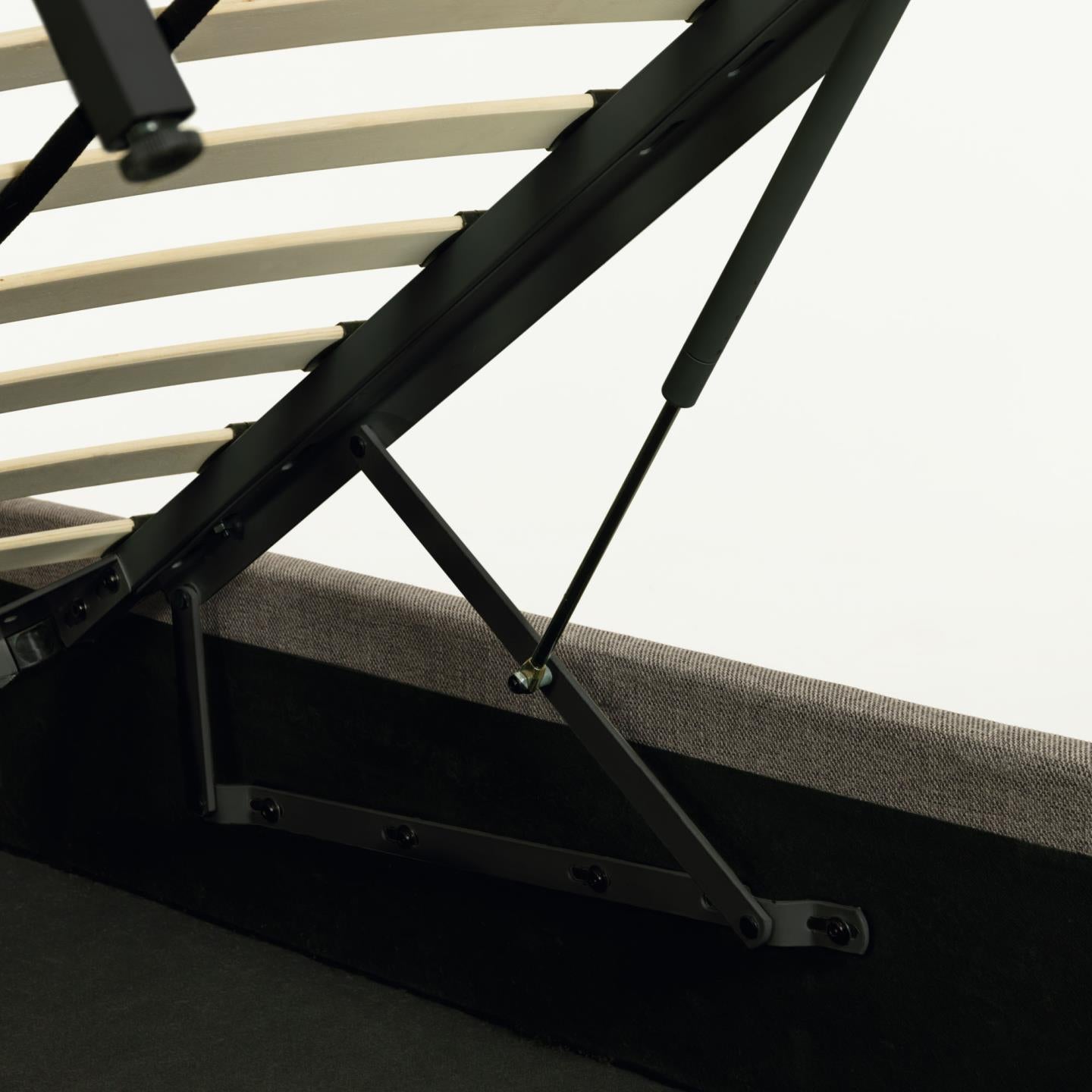 Funkčná posteľ s výklopným úložným priestorom je vybavená jednoduchým a pohodlným mechanizmom plynového piestu, ktorý umožňuje ľahký prístup k priestrannému úložnému priestoru pod matracom. Táto posteľ umožňuje optimálne využiť priestor v spálni, spájajúc estetiku s každodenným pohodlím a poriadkom.