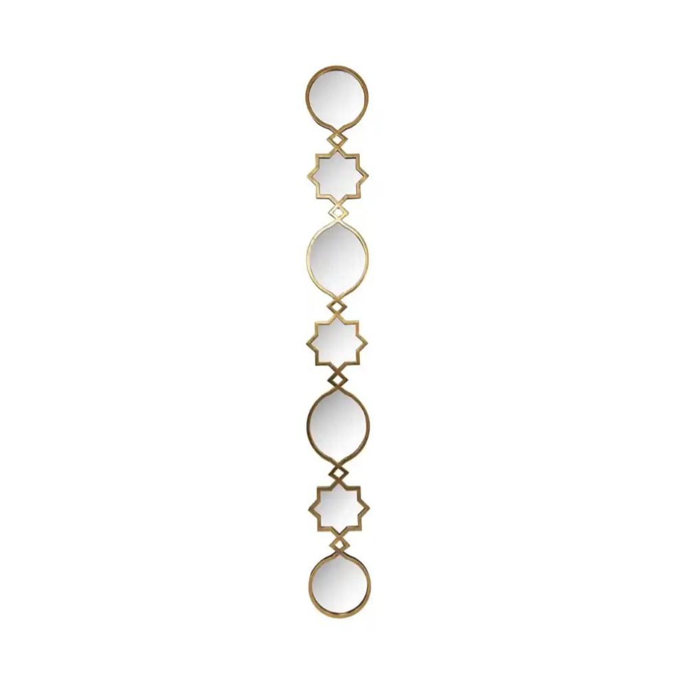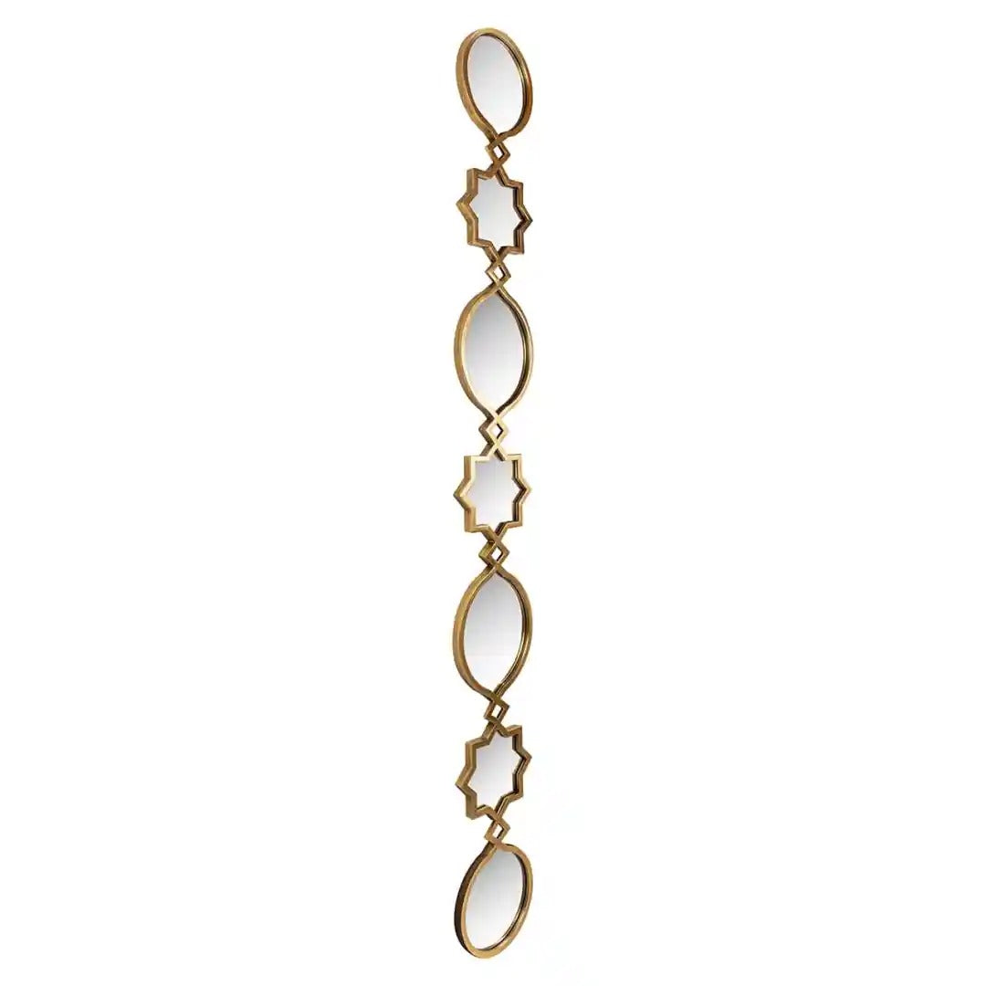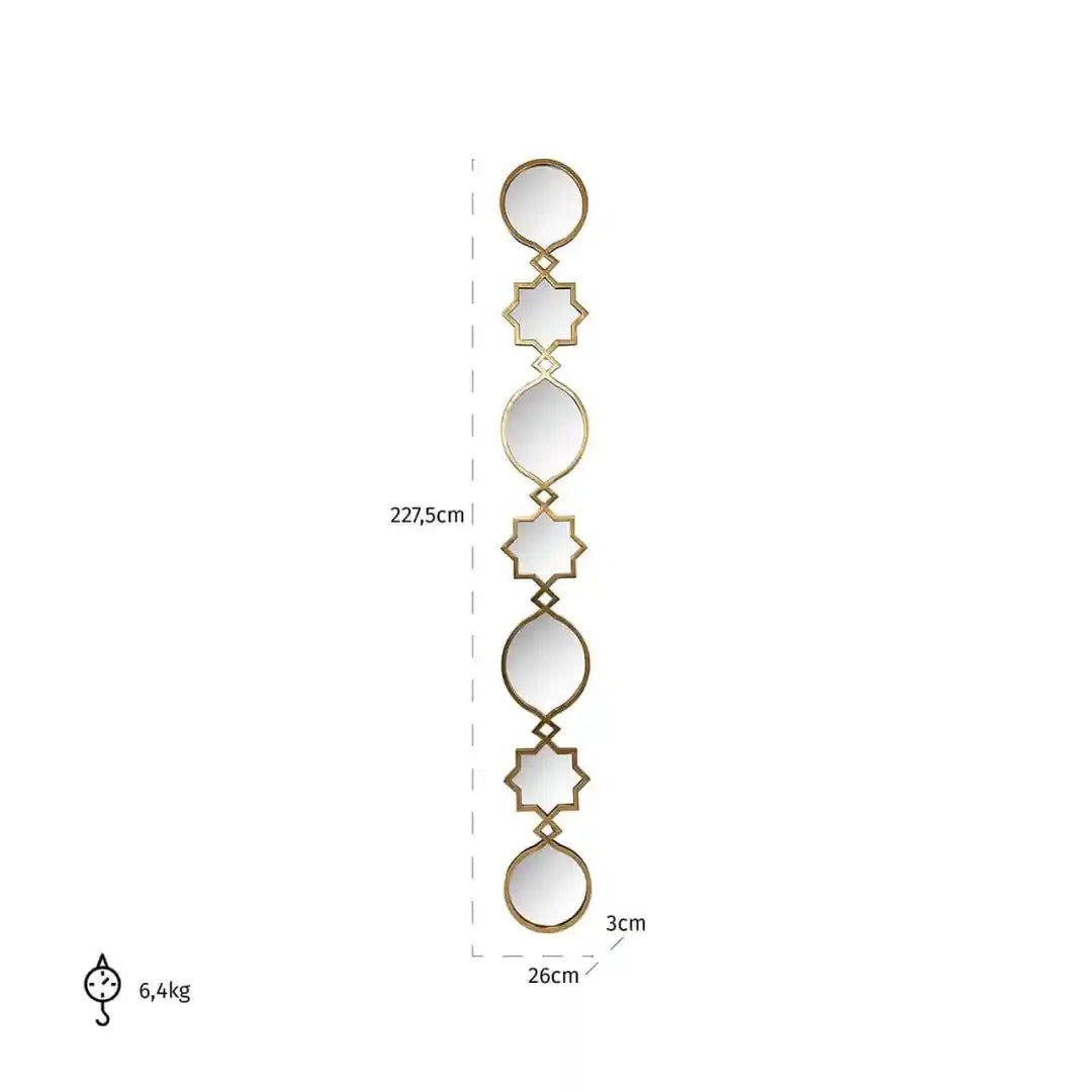 Elegantné zrkadlo Babice dekoratívne s geometrickou formou, ktoré dokonale ozdobí vysoké interiéry a dodá im jedinečný charakter. Štíhla, vertikálna konštrukcia pozostávajúca z prepojených zrkadiel v rôznych tvaroch vnáša do aranžmánov moderný rytmus a opticky zvyšuje priestor. Ideálne sa hodí do obývačky, chodby alebo spálne ako funkčná dekorácia.
