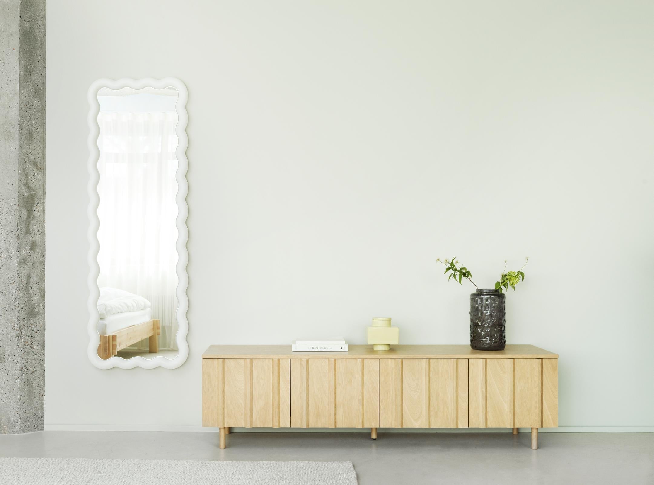 Illu je zrkadlo s jedinečným, vlnitým rámom a zabudovaným, nastaviteľným LED osvetlením. Je to pútavý dizajn, ktorý spája dekoratívny štýl s funkčnosťou a predstavuje výnimočný doplnok do každého priestoru vo vašej domácnosti. Illu je netradičné zrkadlo so zábavnou formou a zaujímavým rámom, ktorý sám osvetľuje zrkadlo, dodávajúc mu charakter a eleganciu. Vlnitý rám bol navrhnutý s primeranou hrúbkou, aby sa zmestilo integrované osvetlenie, ktoré vytvára správnu atmosféru. Po zapnutí svetla sa rám stáva zdrojom iluminácie, dodávajúc zrkadlu jedinečný pôvab.