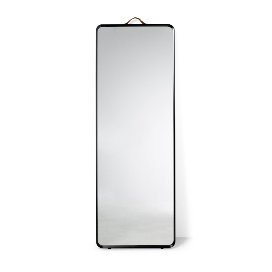 Norm je zrkadlo spájajúce funkčnosť s estetikou – môžete ho zavesiť na stenu alebo opierať o komodu, toaletný stolík či pracovnú dosku. Kožený pás mu dodáva výnimočný charakter a uľahčuje montáž, ktorá prebieha pomocou priložených príslušenstiev. Je to vynikajúca voľba do interiérov, ktoré si cenia moderný dizajn a vysokú kvalitu spracovania.