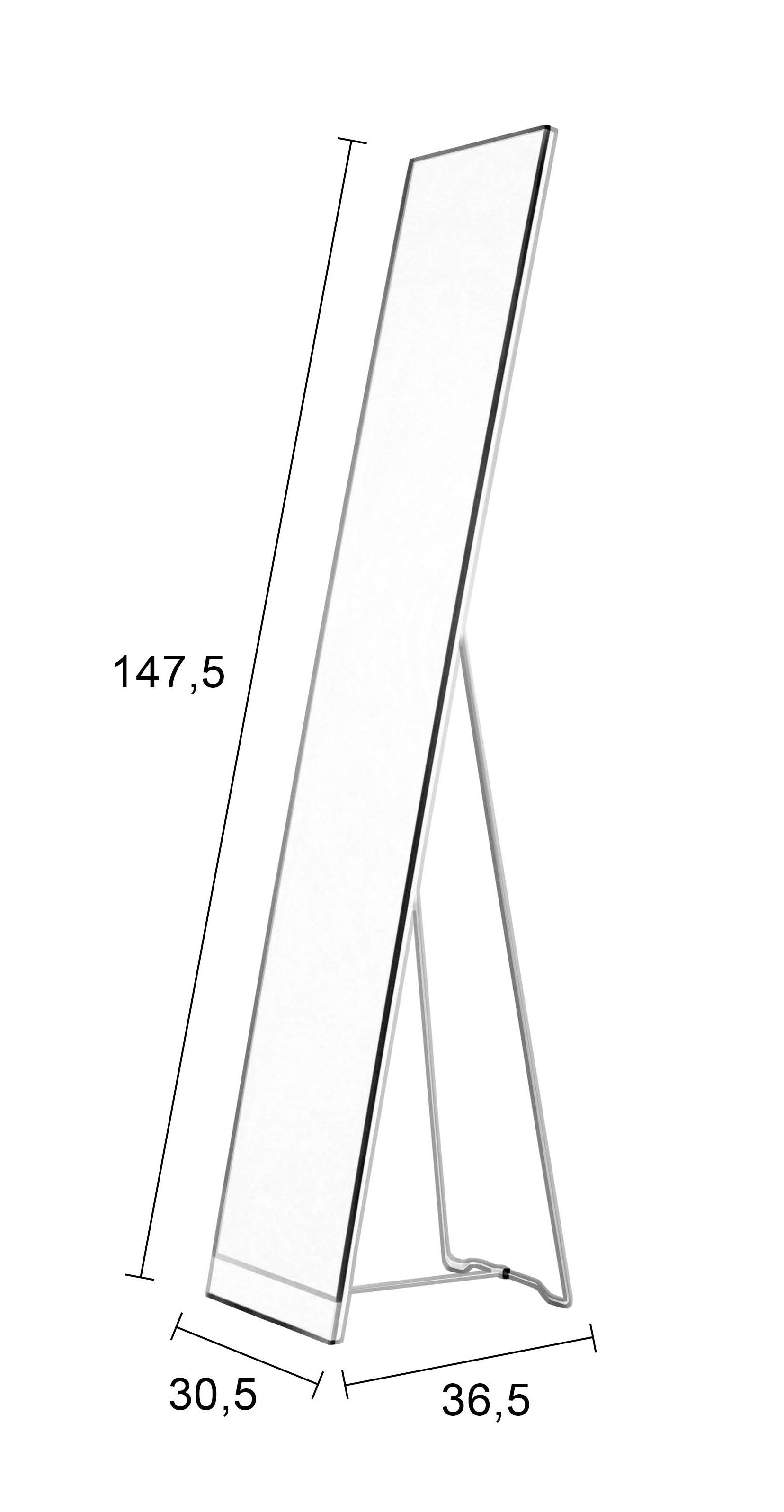 Zrkadlo Raj sa vyznačuje škandinávskym a minimalistickým štýlom a skladacím stojanom, ktorý uľahčuje nastavenie a prenášanie. Jeho moderný vzhľad sa ľahko kombinuje s každým interiérom, pričom mu dodáva eleganciu. Podlahové zrkadlo je vyrobené z 3 mm zrkadlového skla na 12 mm MDF doske, a oceľový rám s bielym práškovým nástrekom mu dodáva estetický vzhľad. Umiestnite zrkadlo tak, aby odrážalo denné svetlo, čím osvetlí a zväčší priestor vo vašom domove.