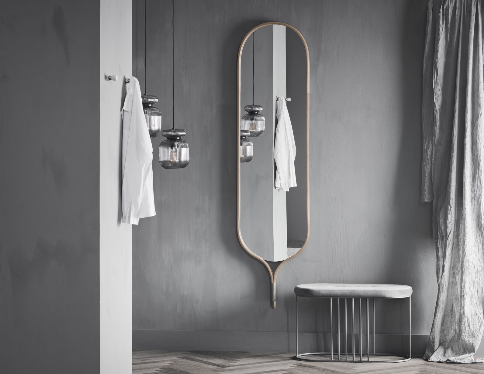 Kolekcia rukami vyrobených zrkadiel navrhnutých Oliverom Schickom sa vyznačuje rámom z ohýbaného dubového dreva, ktorý obklopuje zrkadlo. Táto precízna technika zabezpečuje, že každé zrkadlo je jedinečné, spájajúce eleganciu s nádychom zábavy vo svojom výraze. Inšpiráciou pre túto sériu boli tvary tenisových rakiet, čo je jasne viditeľné v charakteristickom zaoblenom vrchole rámu. Je to elegantný a organický dizajn vyrobený z materiálov najvyššej kvality. Zrkadlá Racquet sú dostupné v rôznych rozmeroch a tvaroch, čo umožňuje prispôsobiť ich rôznym interiérom a priestorom.