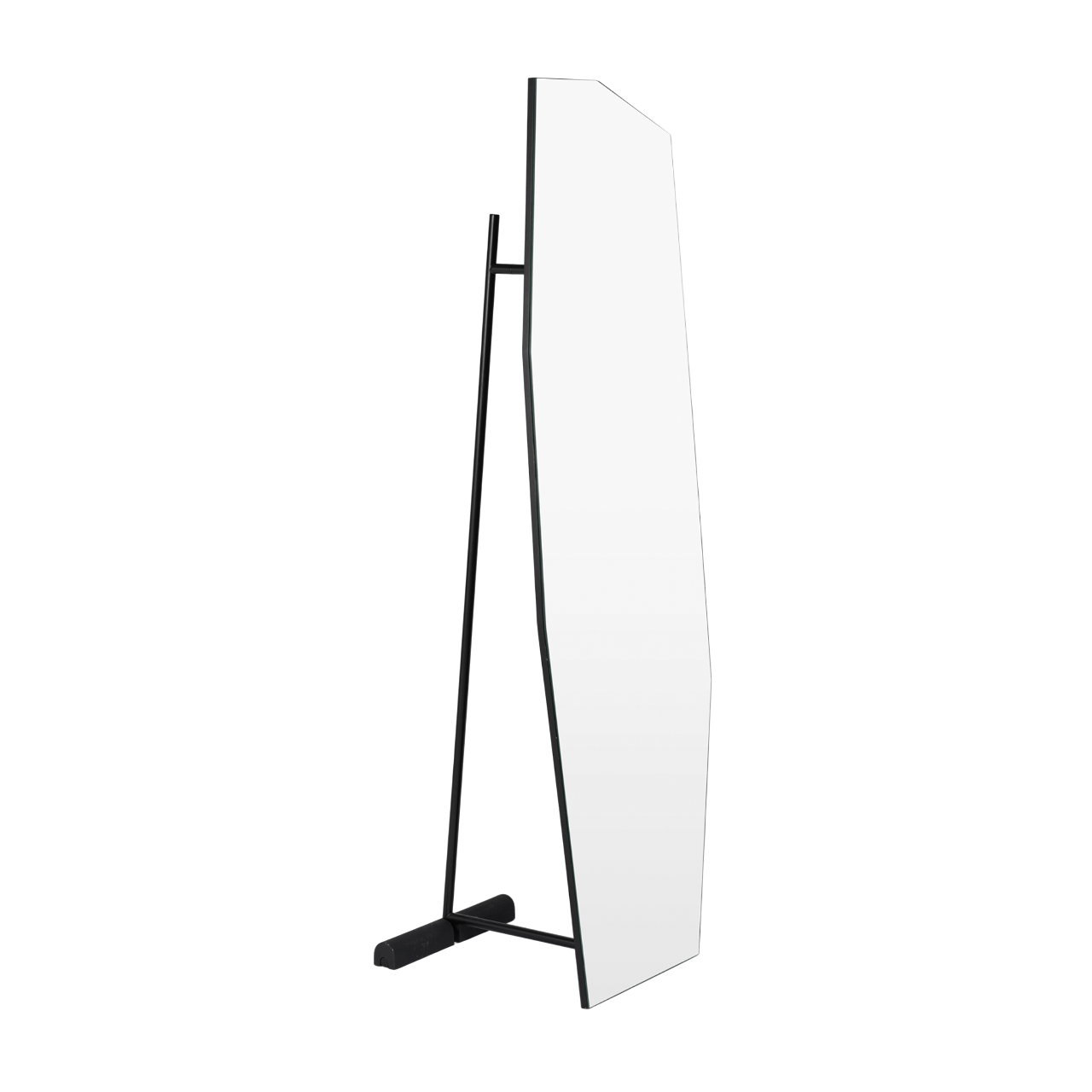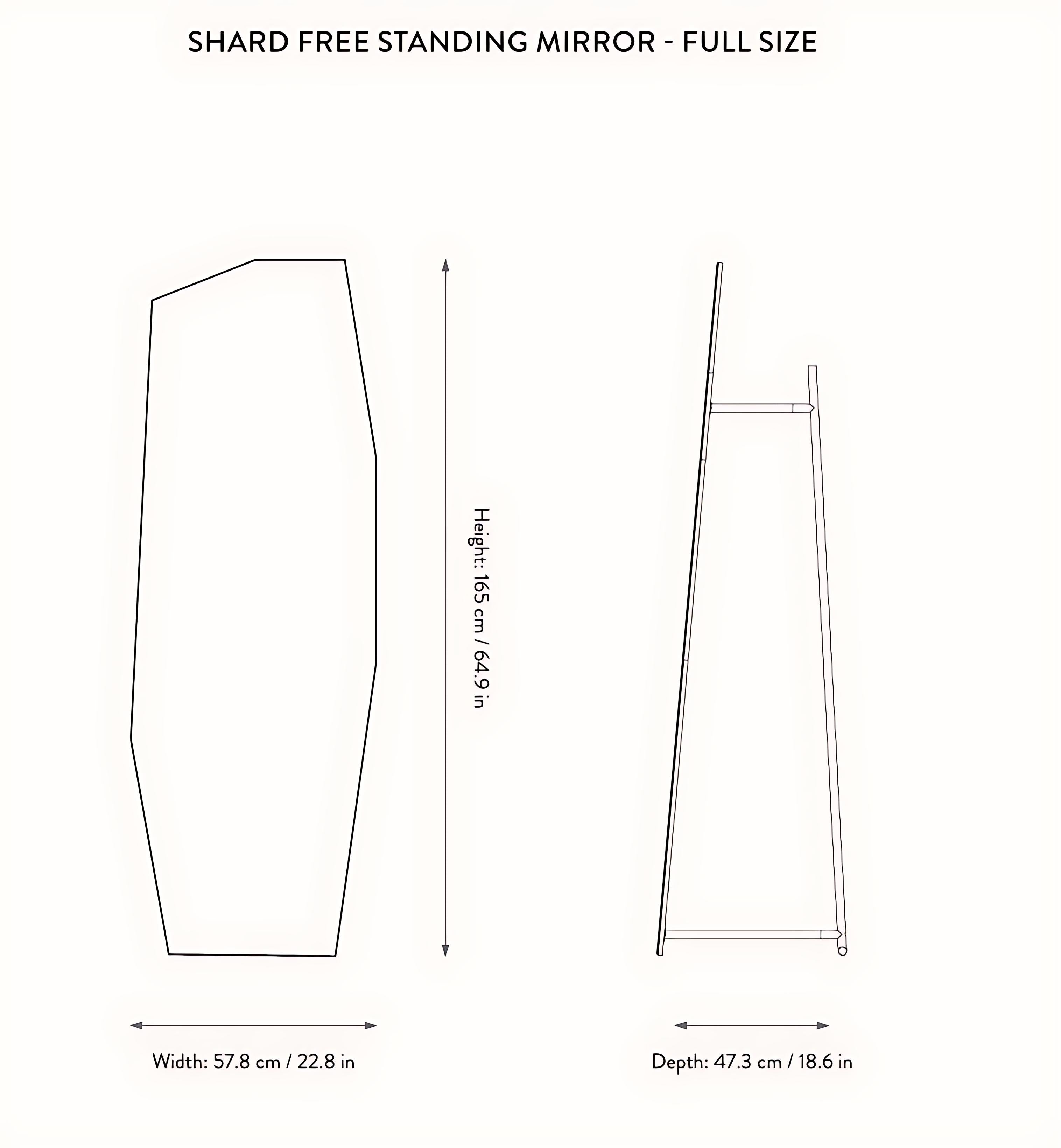 Zrkadlo Shard Free Standing je jedinečný prvok, ktorý prináša moderný a odvážny akcent do každého interiéru. Jeho názov pochádza z inšpirácie, ktorú predstavujú ostré, surové hrany rozbitých kusov keramiky, skla a kameňa. Asymetrická forma zrkadla mu dodáva jedinečný charakter, a oceľový rám s práškovým nástrekom umožňuje zavesenie obľúbených odevov či plášťov na zadnej strane zrkadla, spájajúc funkčnosť s estetikou.