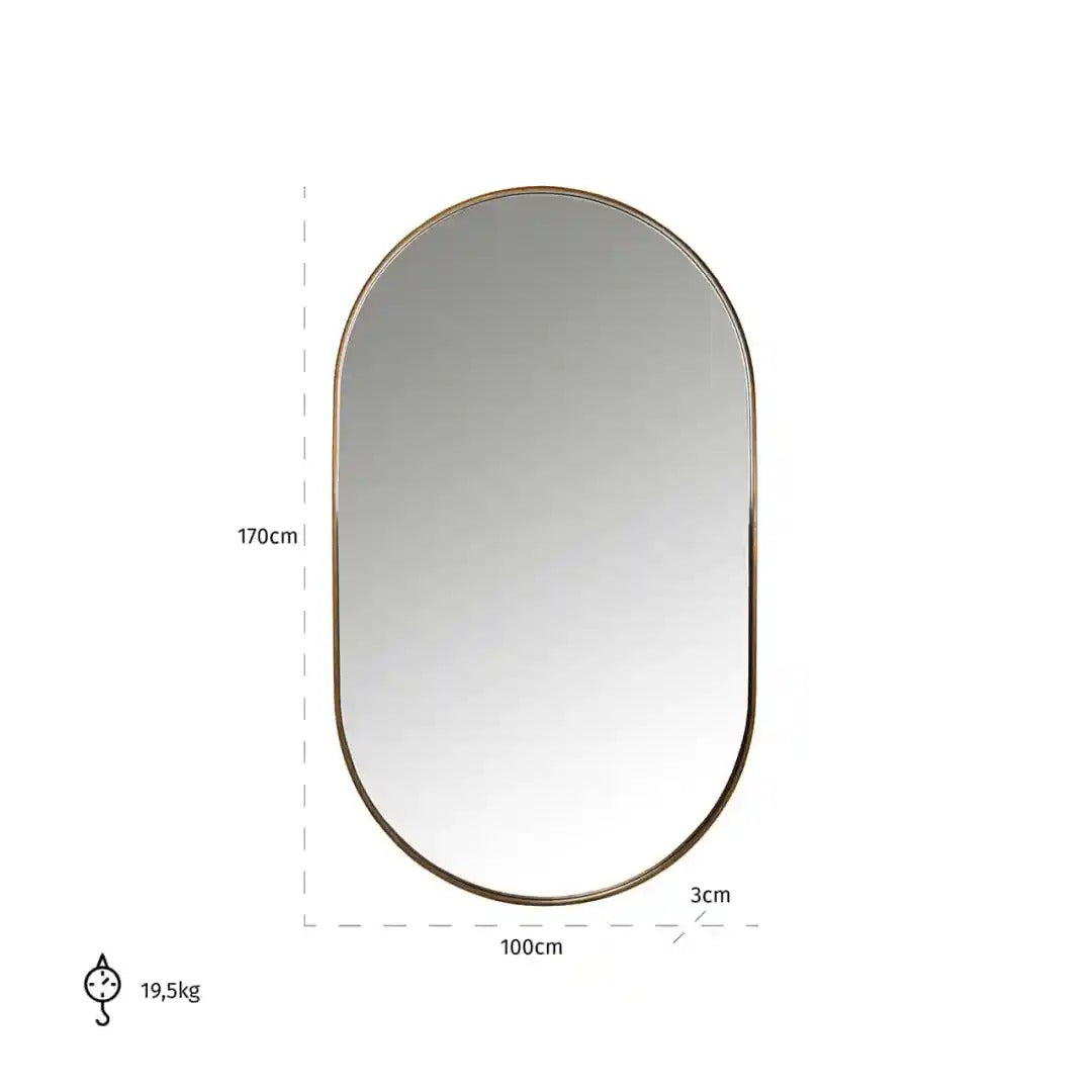 Elegantné oválne zrkadlo Skylar v štíhlej zlatej ráme je návrh, ktorý prinesie do interiéru jemný nádych luxusu. Jeho minimalistická forma zabezpečuje, že sa skvele hodí ako k klasickým, tak aj k moderným aranžmánom. Jemná rám podčiarkuje tvar plochy, nepreťažujúc celok, vďaka čomu zrkadlo plní nielen dekoratívnu, ale aj praktickú funkciu.