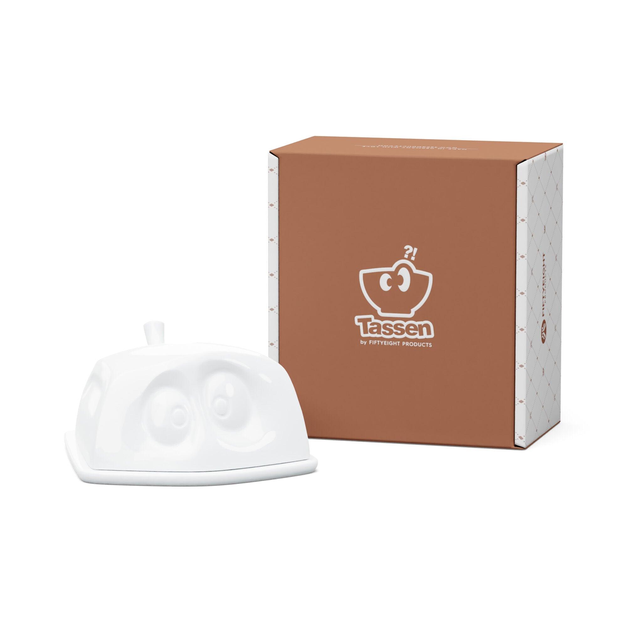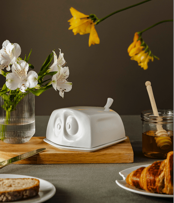 Navyše, naša maselnica je o niečo vyššia ako štandardné verzie, čo umožňuje skryť pod ňou nielen štandardný kúsok masla s hmotnosťou 250 g, ale aj o niečo väčší kúsok hladkého masla. Je to praktická a humorná nádoba, ktorá pridáva šarm každému stolu a robí servírovanie masla zábavným zážitkom.