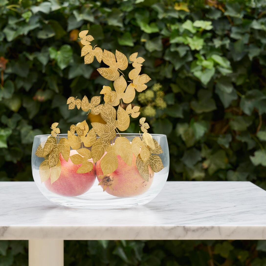 Misa Autumn in NY to dekoracyjny akcent, który wnosi do wnętrza romantyzm jesieni – nie tylko za sprawą swojej formy, ale i wyjątkowego detalu. Kryształowa misa ozdobiona ręcznie wykonanymi liśćmi z metalu, subtelnie spoczywającymi na jej krawędzi, przypomina spacer po nowojorskim parku o zmierzchu. To nie tylko przedmiot użytkowy, ale także artystyczny hołd dla ulotnego piękna natury.