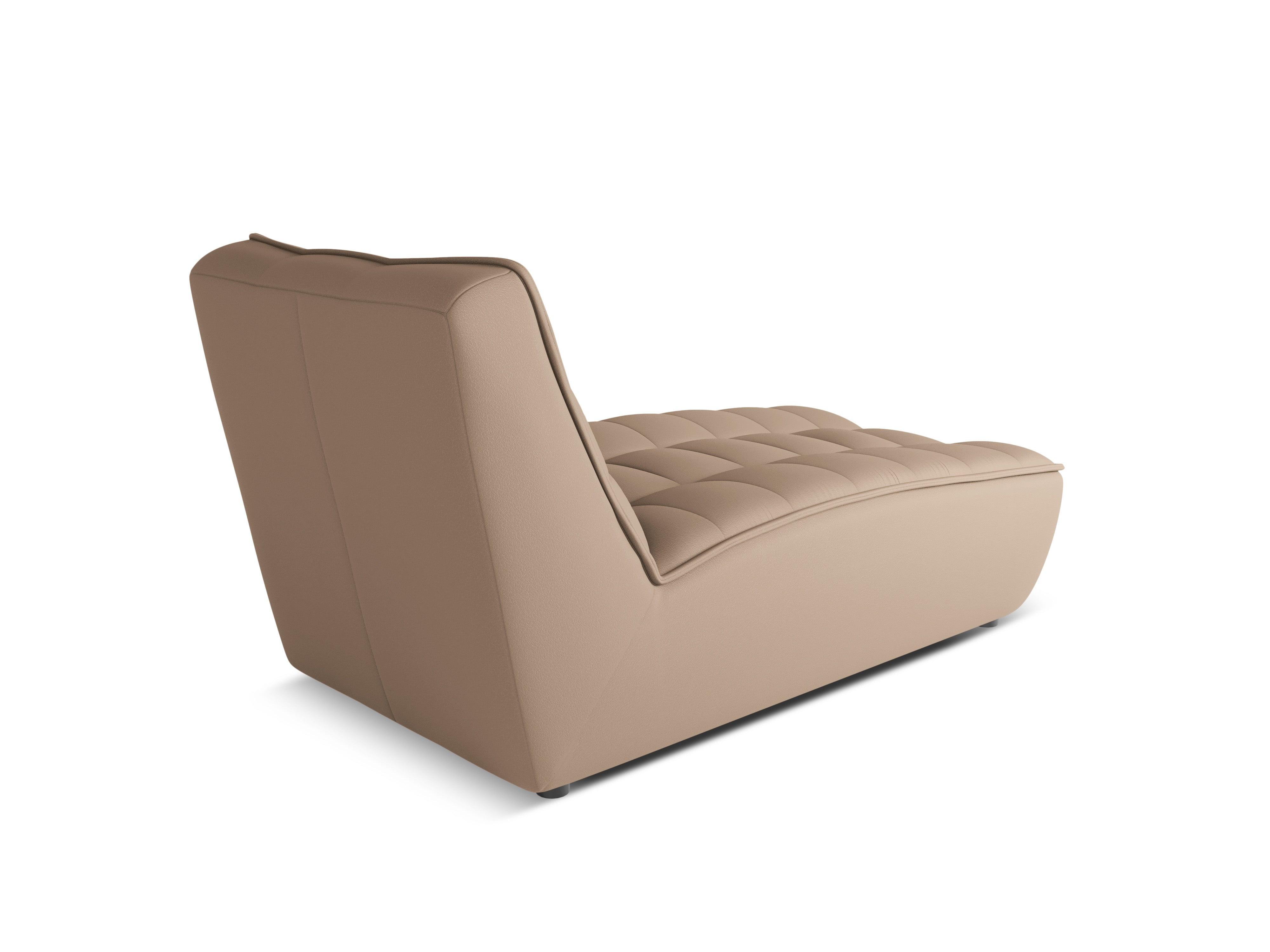 Skórzany szezlong Moni definiuje funkcjonalność i wygoda w połączeniu z nowoczesnym designem. Stylowe pikowanie i oryginalna bryła świetnie sprawdzą się zarówno w eleganckim salonie, jak i w nowoczesnym biurze. Linia siedziska i oparcia jest wygięta w łuk i posiada delikatnie wyprofilowane wgłębienie, oferujące niezwykły komfort użytkowania.