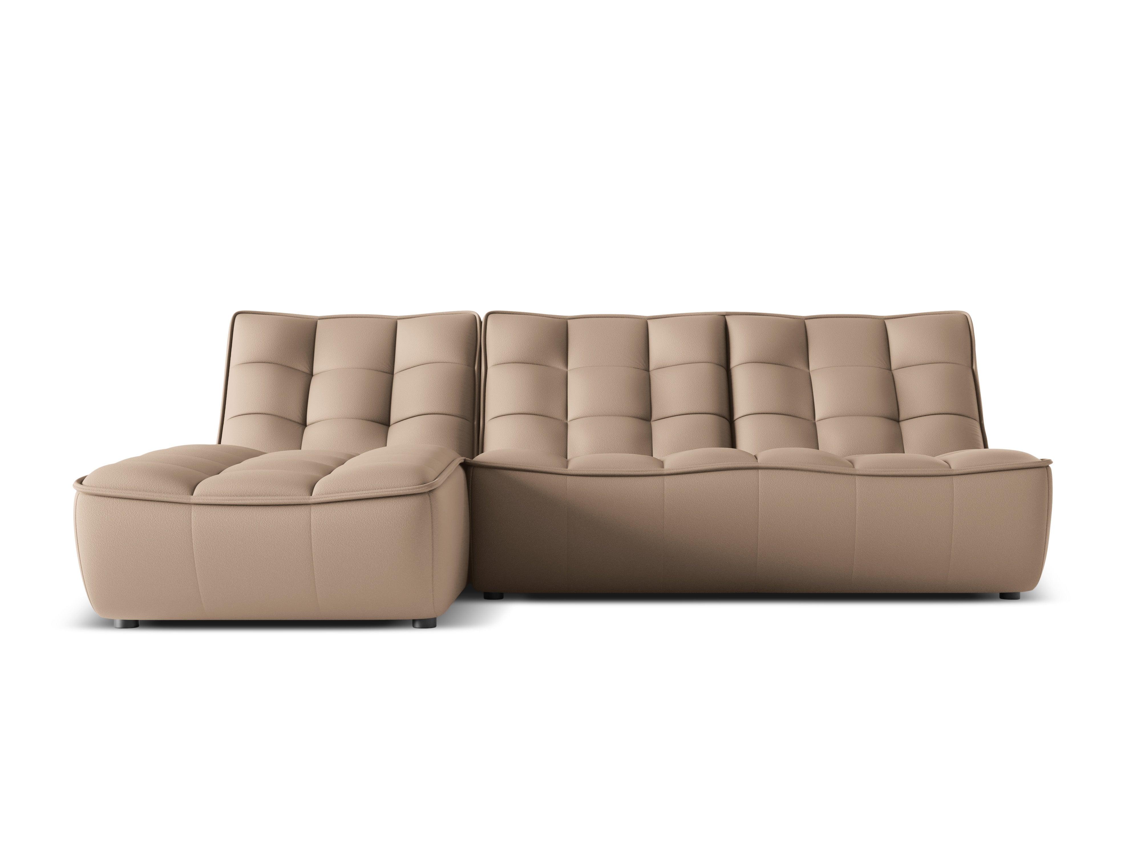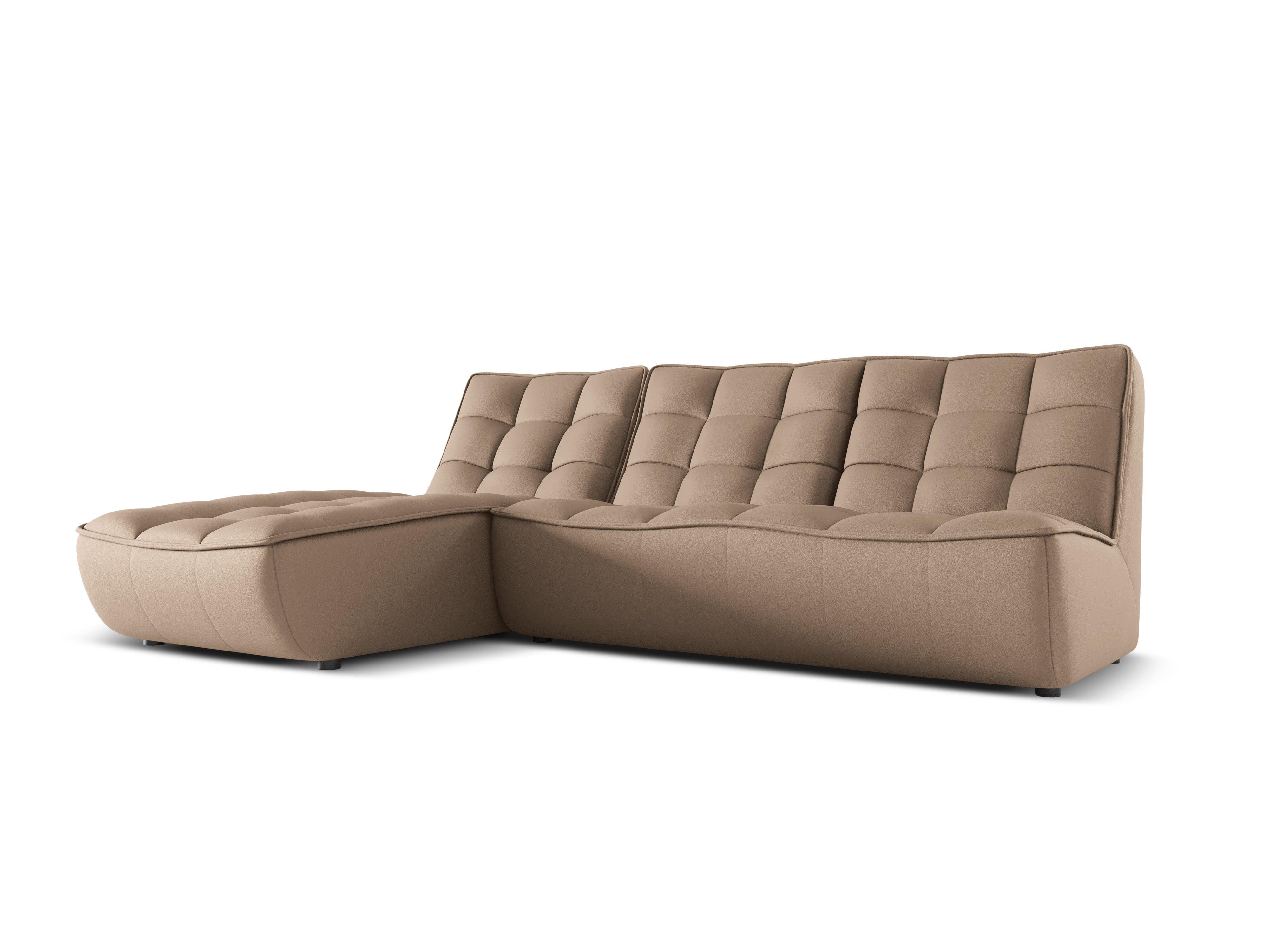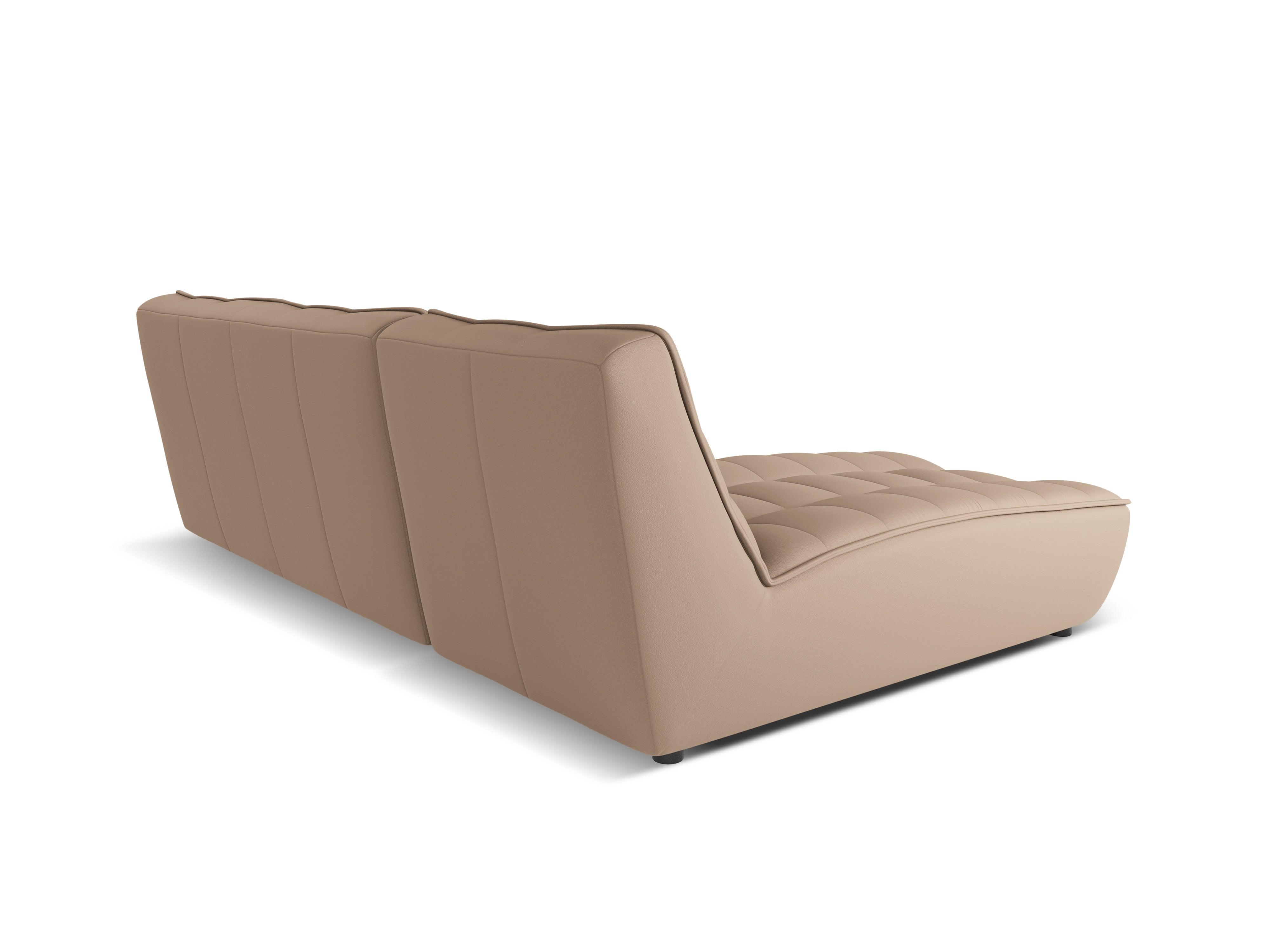 Tapicerka z naturalnej skóry bydlęcej jest delikatnie tłoczona, dzięki czemu jej struktura jest bardzo przyjemna w dotyku. Ergonomiczne kształty zapewniają swobodne podparcie całych pleców. Kolekcja Moni obejmuje kilka kombinacji sof i narożników, a także elementy takie jak fotele, szezlongi i pufy.
