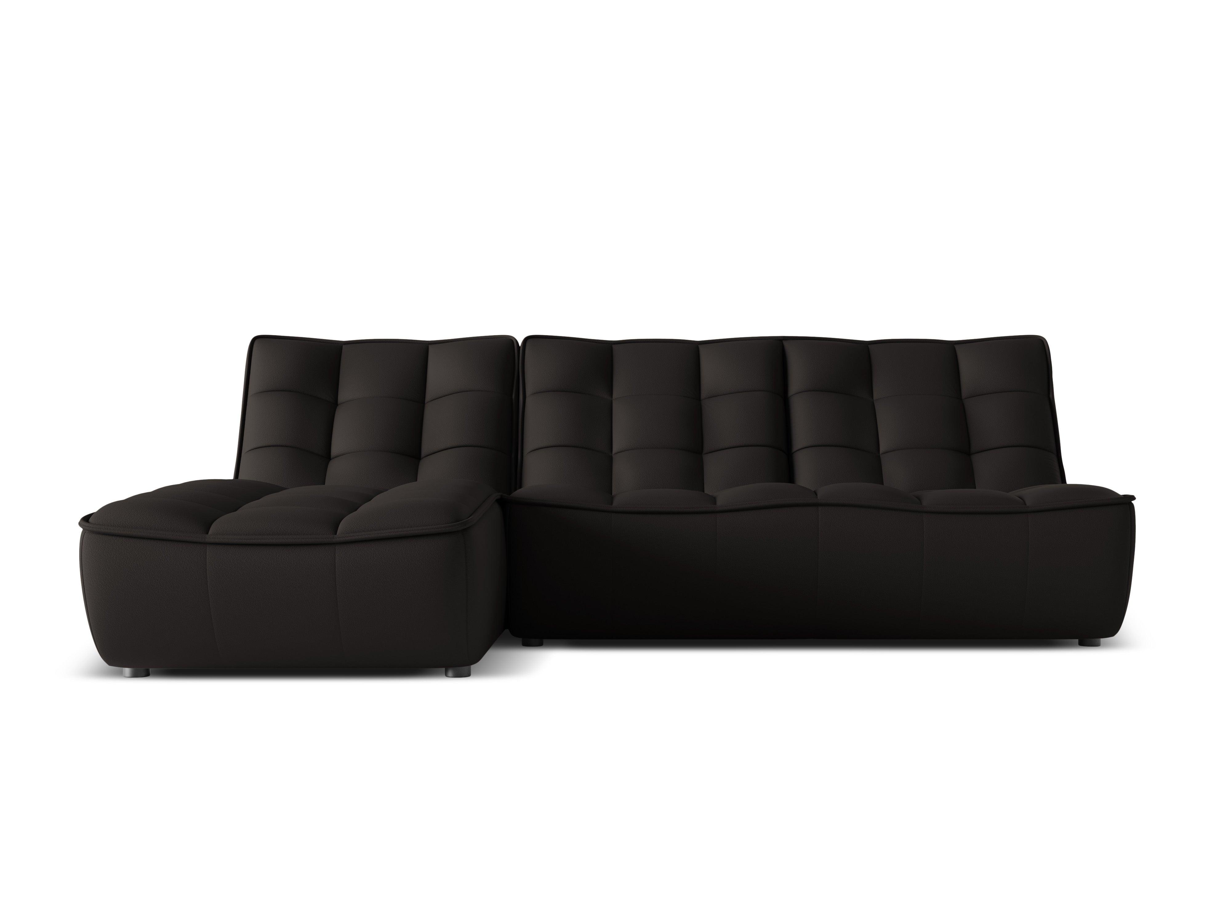 Kožený rohový gauč pre štyri osoby Moni definuje funkčnosť a pohodlie v spojení s moderným dizajnom. Štýlové prešívanie a originálny tvar sa skvele hodia do elegantného obývacieho pokoja aj do moderného kancelárie. Časť sedadla a opierky je zakrivená do oblúka a má jemne profilované prehlbenie, ktoré ponúka mimoriadne pohodlie pri používaní.