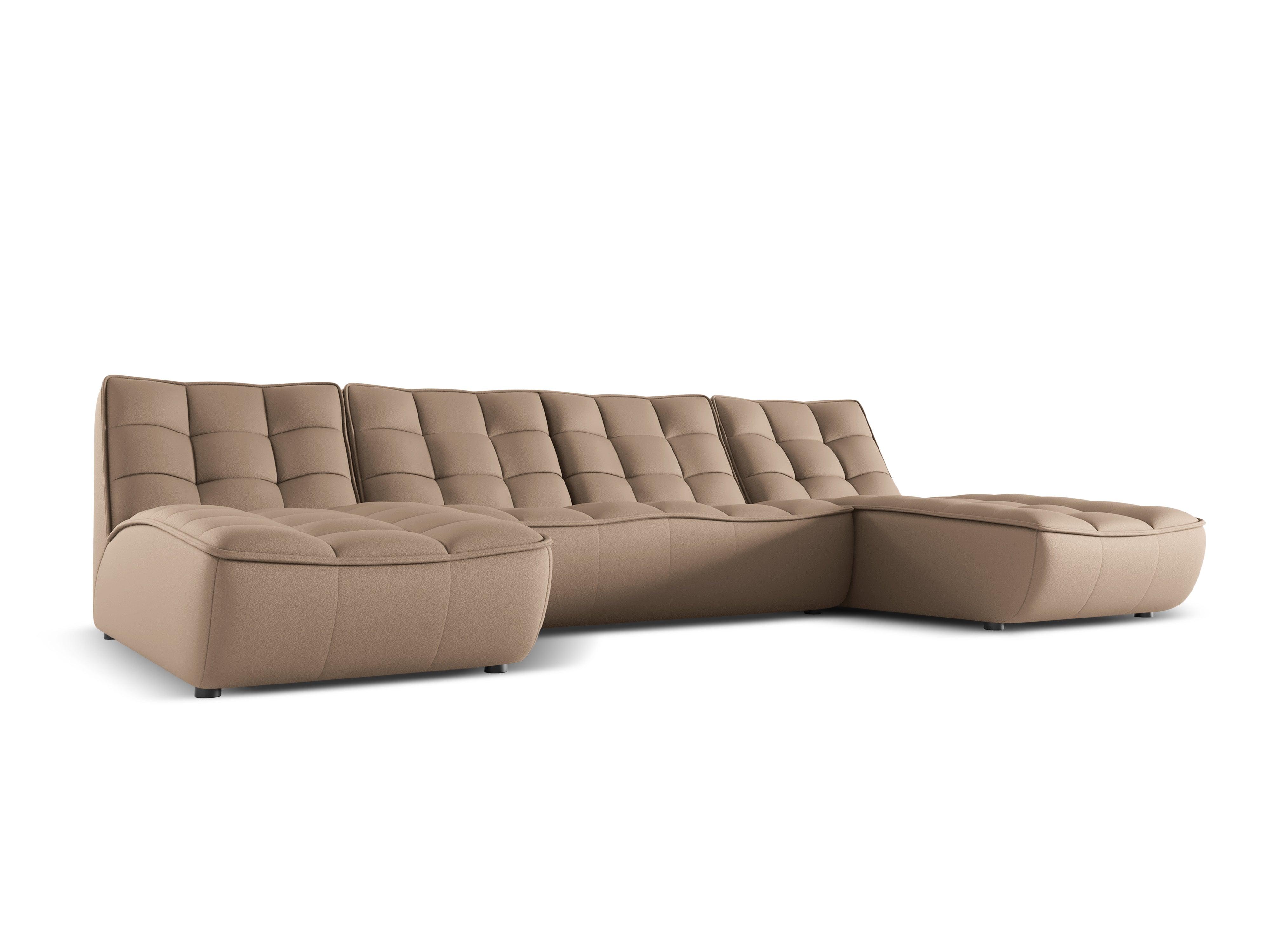 Skórzany narożnik dla sześciu osób Moni definiuje funkcjonalność i wygoda w połączeniu z nowoczesnym designem. Stylowe pikowanie i oryginalna bryła świetnie sprawdzą się zarówno w eleganckim salonie, jak i w nowoczesnym biurze. Linia siedziska i oparcia jest wygięta w łuk i posiada delikatnie wyprofilowane wgłębienie, oferujące niezwykły komfort użytkowania.