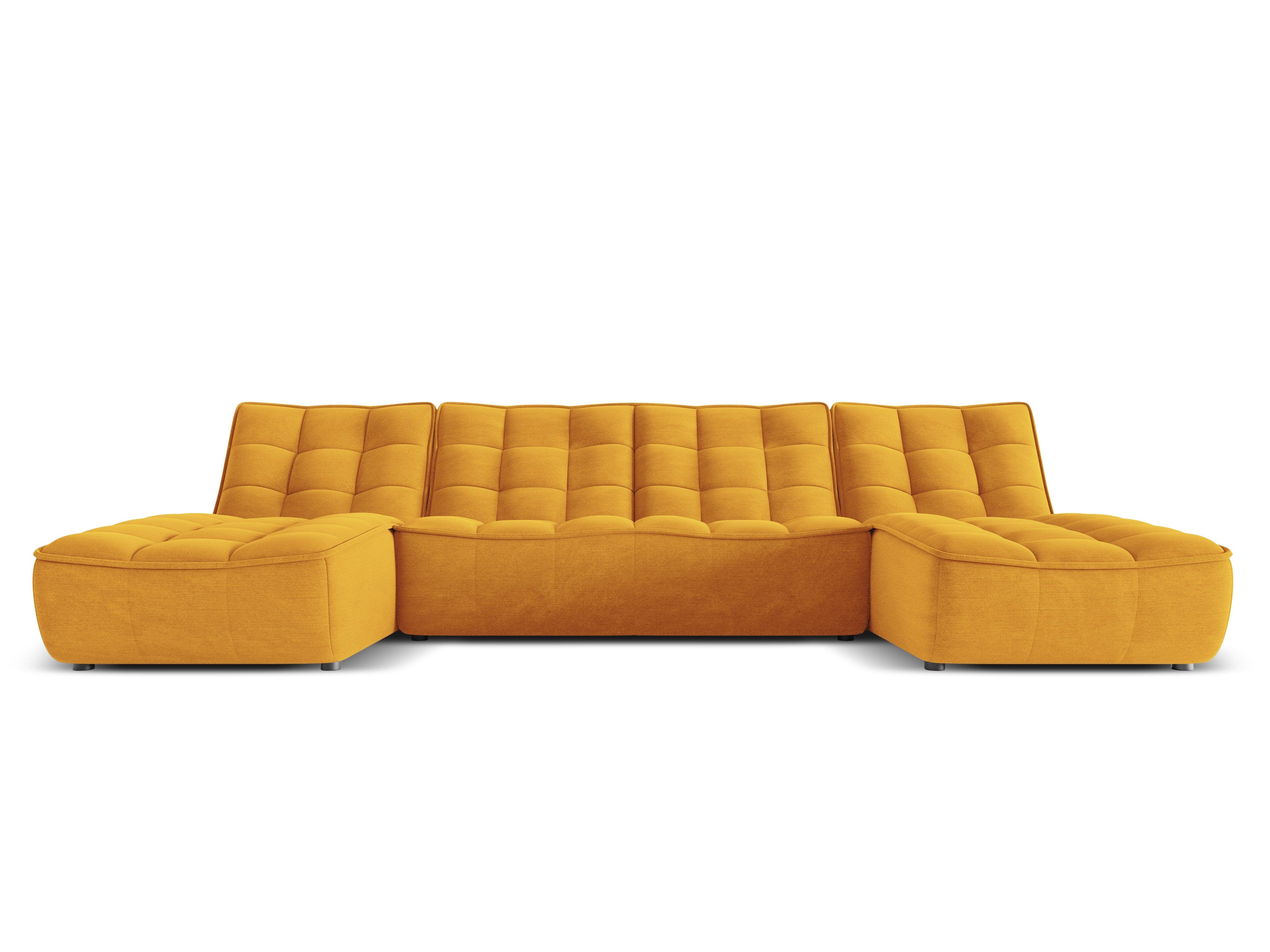Panoramatický rohový gauč Moni definuje funkčnosť a pohodlie v spojení s moderným dizajnom. Štýlové prešívanie a originálny tvar sa skvele hodia do elegantného obývacieho pokoja aj do moderného kancelárie. Čiara sedadla a operadla je zakrivená do oblúka a má jemne profilované prehlbenie, ktoré ponúka mimoriadne pohodlie pri používaní.