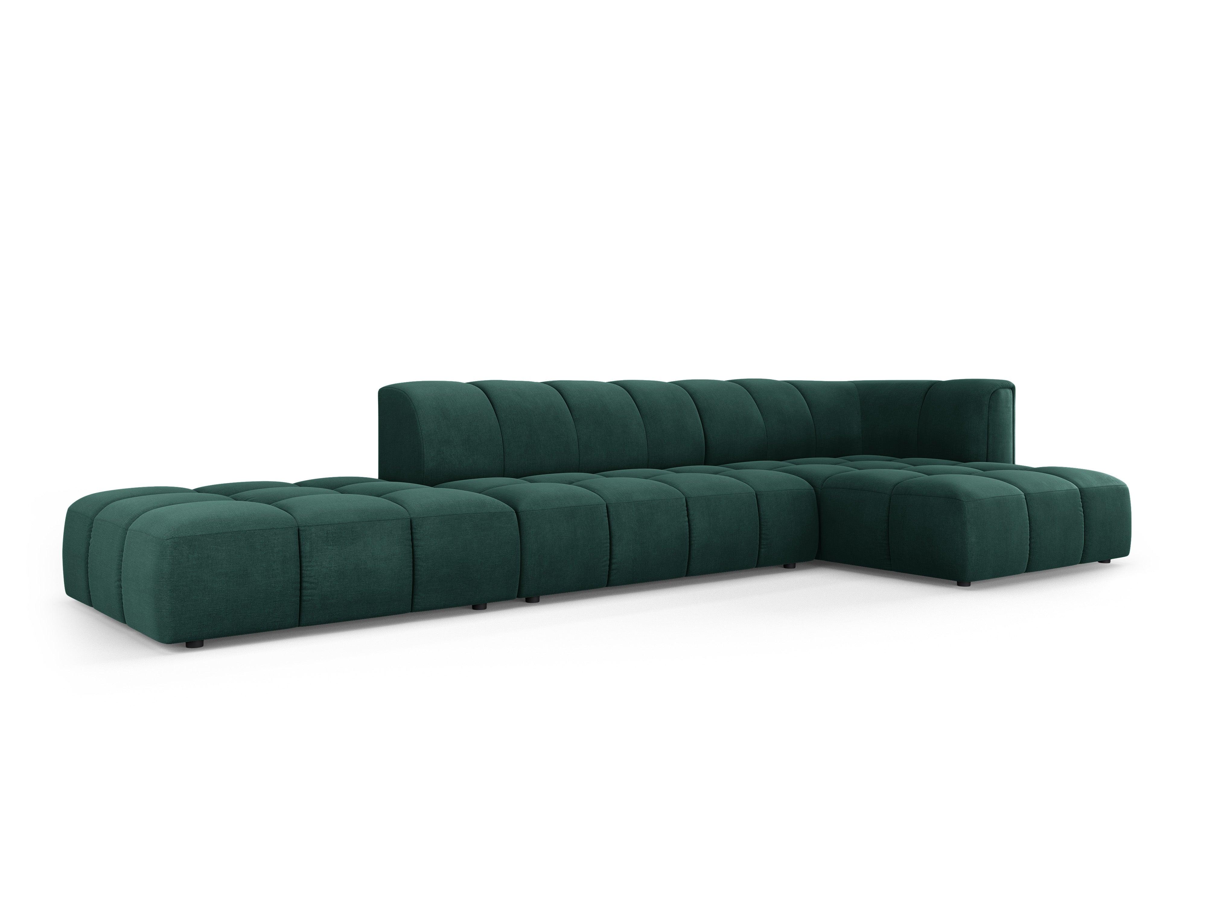 Rohová sedačka pre 5 osôb pravostranná otvorená FRANCESCA fľaškovozelená šenil