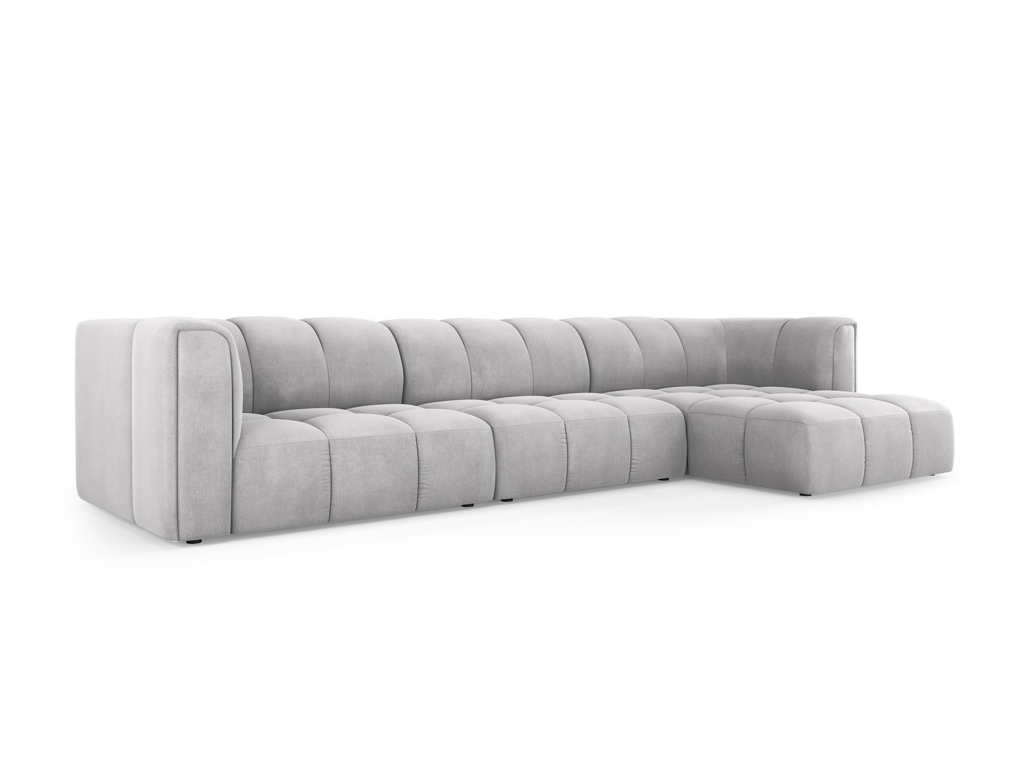 Rohová sedačka pre 5 osôb pravostranná FRANCESCA svetlosivá s zamatom
