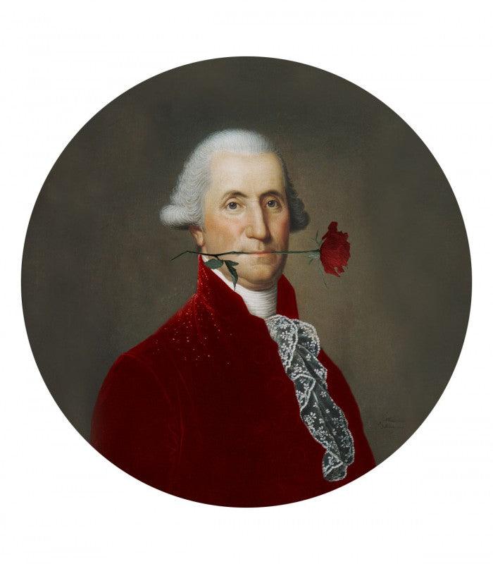 dots - Rose Lover Red je okrúhla nástenná maľba, ktorá zobrazuje klasickú postavu s ružou. Tento neobyčajný dekoratívny prvok pridáva štipku historického šarmu a romantického akcentu do každého interiéru, vytvárajúc rafinovanú atmosféru s nádychom nostalgie.