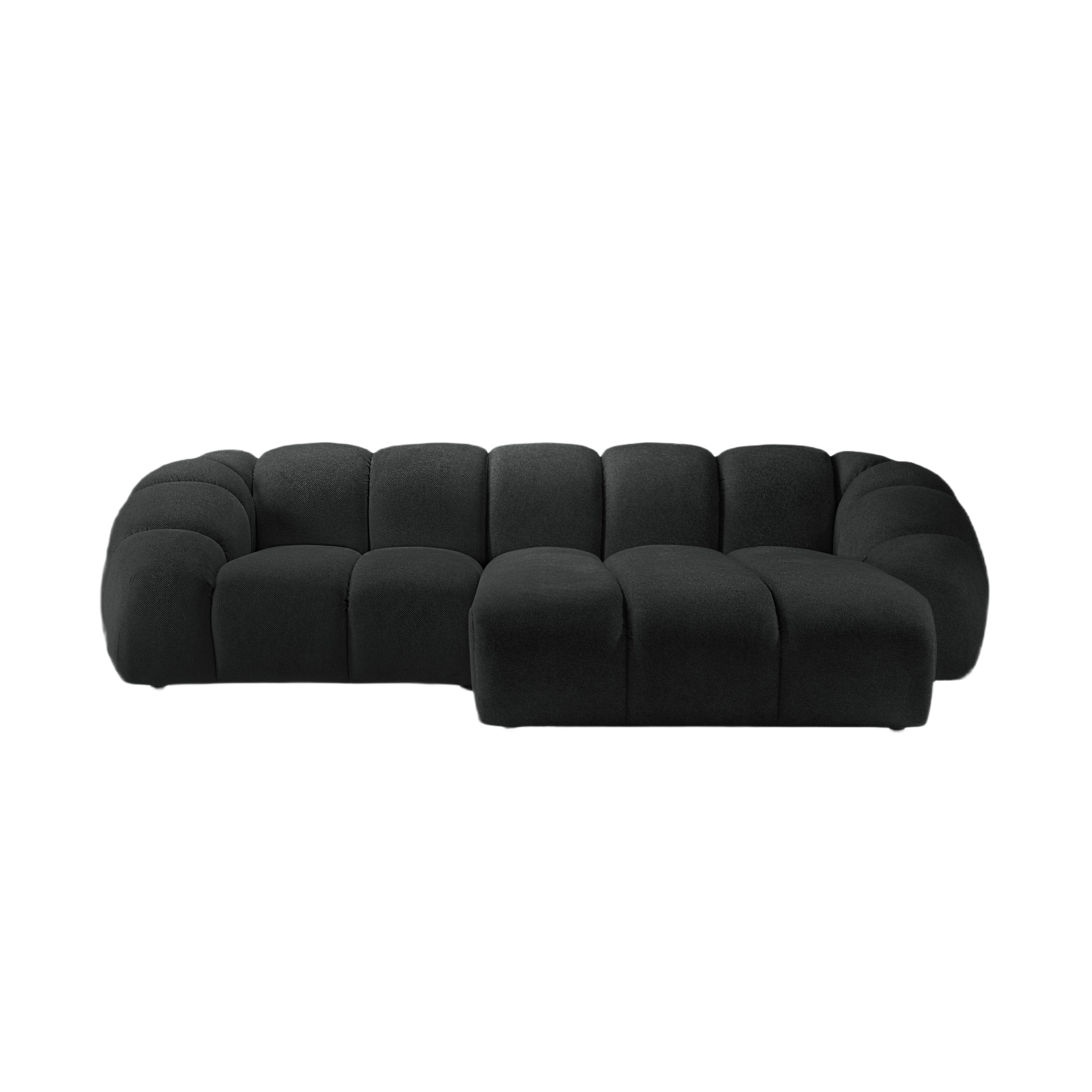 Tkanina Bubble charakteryzuje się unikalnym, dzianinowym, aksamitnym wyglądem. Jej powierzchnia wydaje się pokryta małymi, estetycznymi, wypukłymi kulkami. Materiał ten ma fakturę przypominającą zestawienie małych supełków, niemal kręconych, i jest bardzo miękki w dotyku. Ta tapicerka jest dostępna w wielu odcieniach, a niektóre warianty odcieni mogą się nieznacznie różnić w zależności od oświetlenia. Większość odcieni ma melanżowy wygląd, który jest nie tylko estetyczny, ale także pomaga ukryć ewentualne plamy. Tkanina ma lekko błyszczące wykończenie, co czyni ją doskonałym wyborem do nowoczesnych mebli. Ta kategoria tapicerki tekstylnej Bubble jest bardzo trwała i posiada warstwę WaterBlocked, która zapobiega wnikaniu rozlanych płynów w głąb włókien. Czyszczenie jest zatem szybkie i łatwe: wystarczy osuszyć powierzchnię chłonnym ręcznikiem papierowym. Dzięki swoim właściwościom aksamit Bubble jest doskonałym wyborem na tapicerkę, szczególnie do mebli regularnie użytkowanych, gdzie oczekuje się, że zachowa swoją estetykę jak najdłużej.