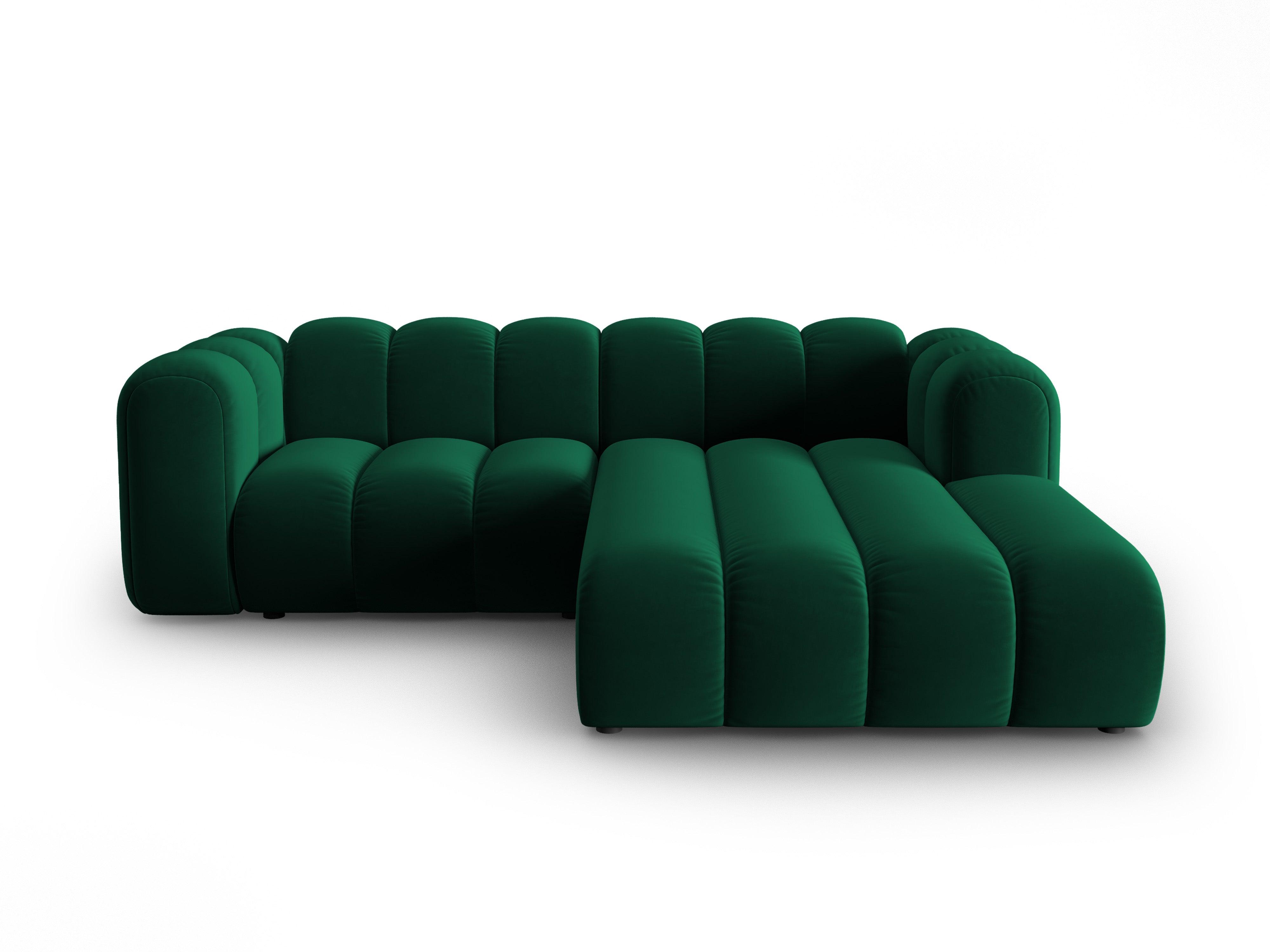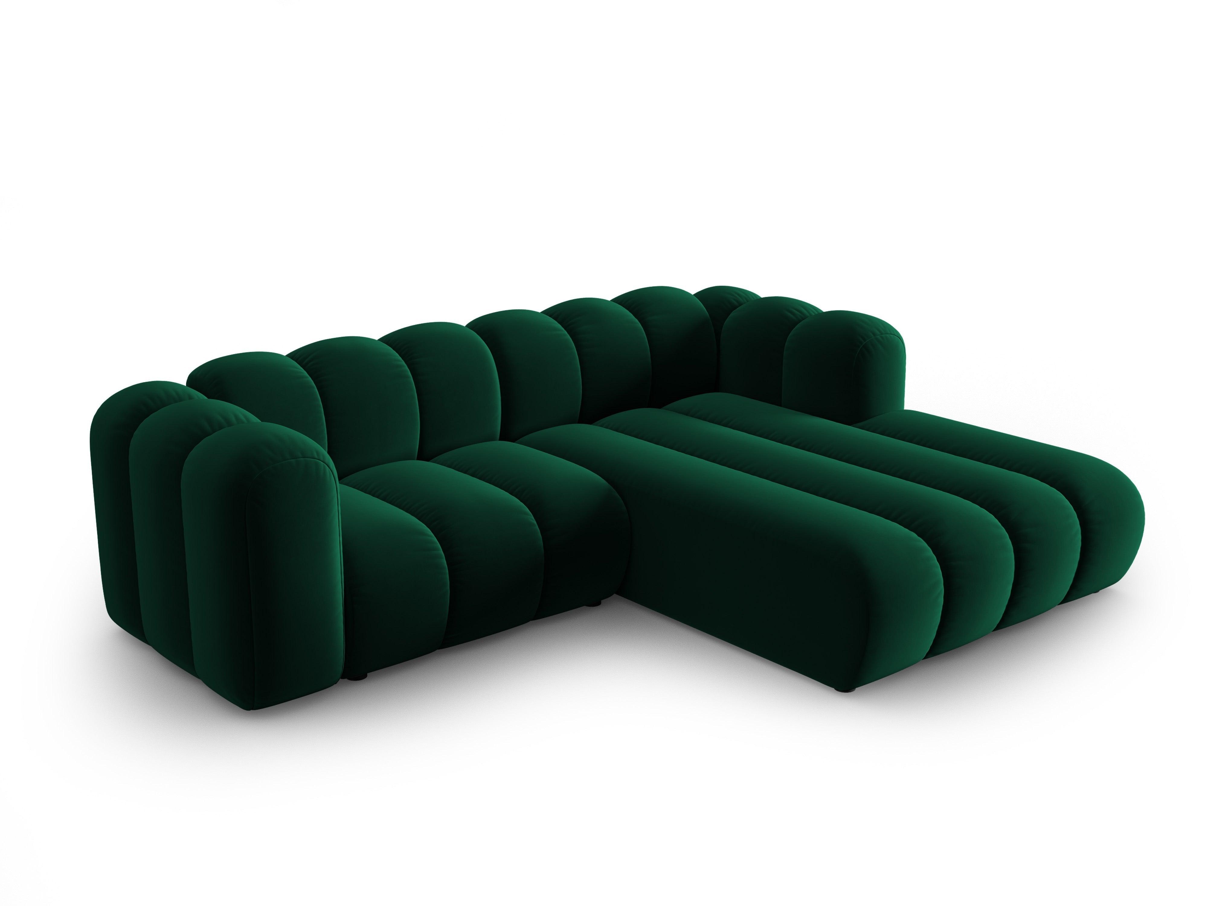 Narożnik aksamitny 3-osobowy prawostronny LUPINE butelkowy zielony