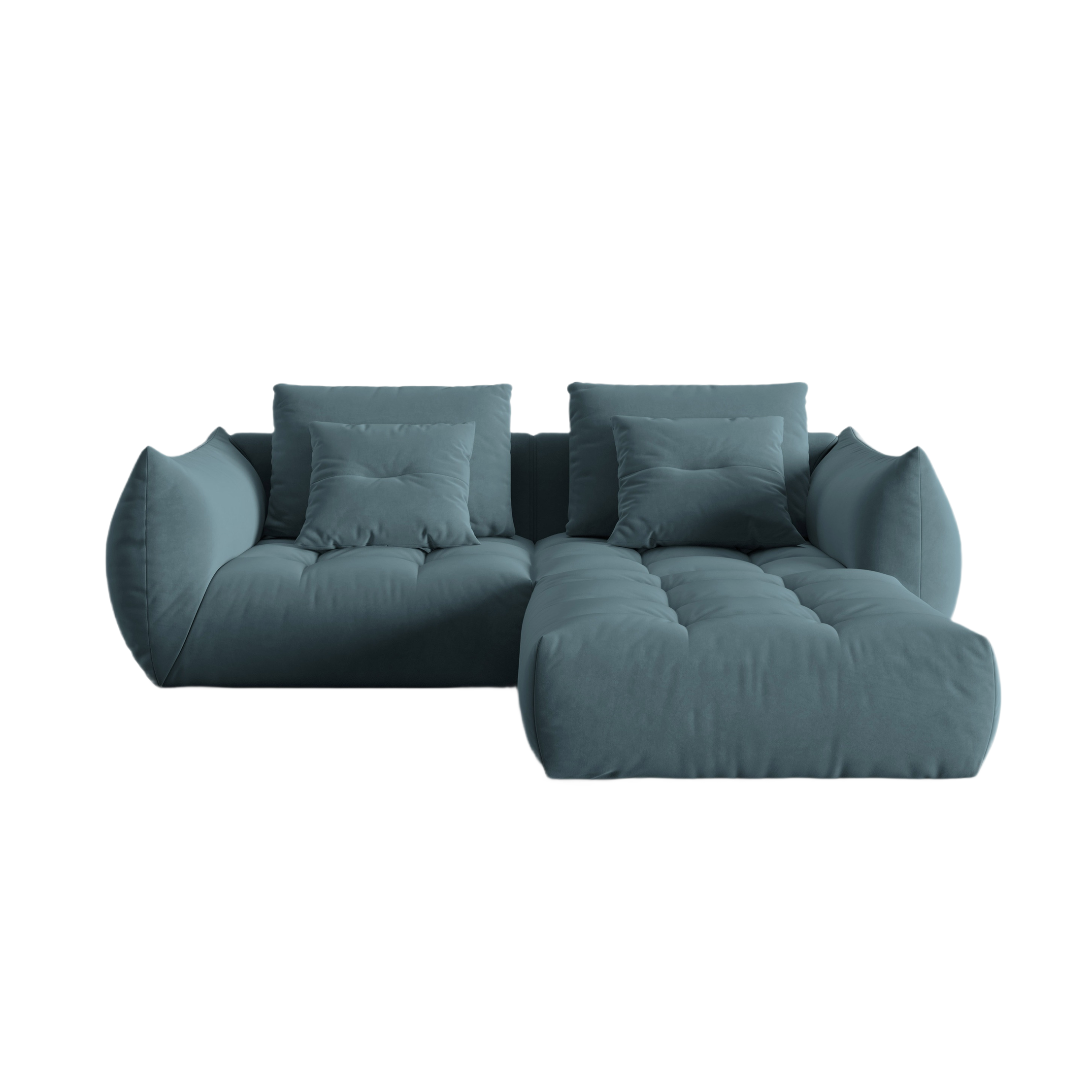 Model Bloom bol navrhnutý s ohľadom na maximálnu flexibilitu. Vďaka modulovému systému si môžete sami rozhodnúť o usporiadaní pohovky a na ktorej strane sa nachádza ležadlo alebo taburetka. Spojenie prvkov je rýchle a pohodlné vďaka spojkám typu „krokodíl“ umiestneným po oboch stranách. Vysokokvalitná zamatová tkanina je odolná voči poškriabaniu a má hydrofóbne vlastnosti, čo chráni rohový gauč pred znečistením a škvrnami.