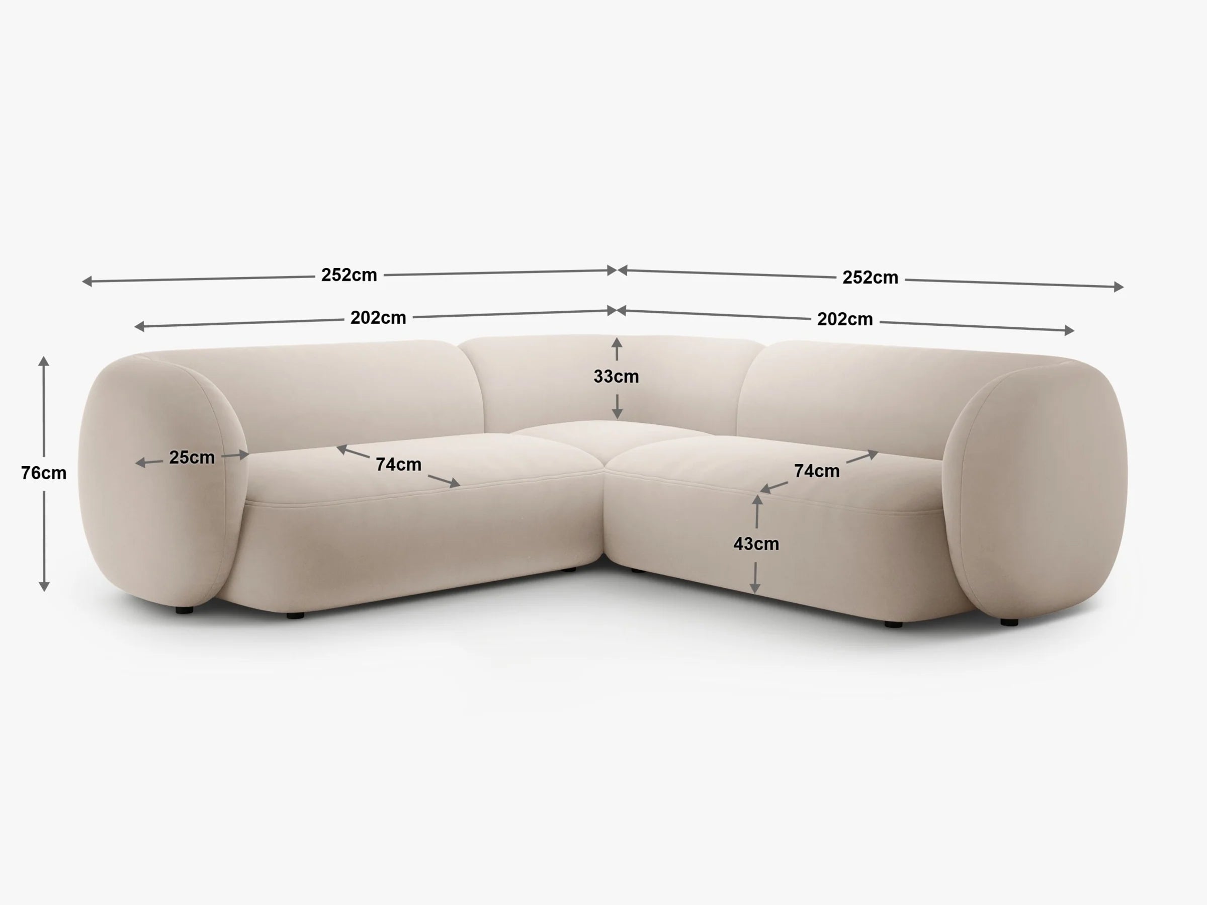 Rohová sedačka z aksamitného materiálu pre 4 osoby pravostranná RUBY béžová