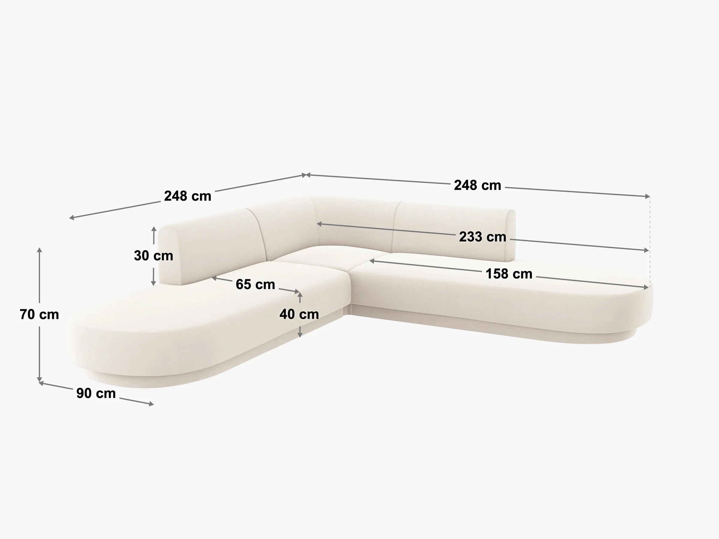 Rohová sedačka z jemného velúru pre 5 osôb pravostranná RUBY béžová