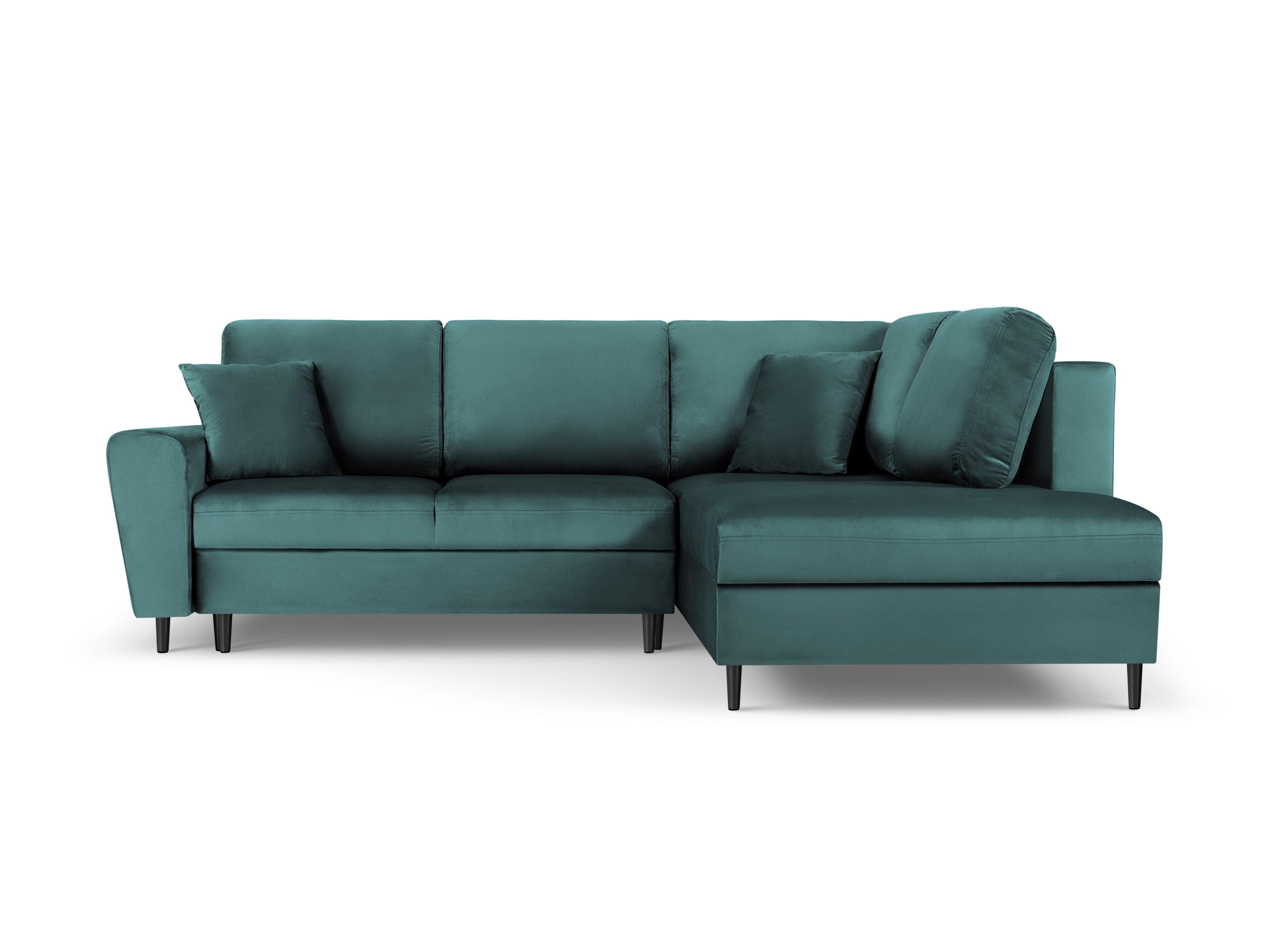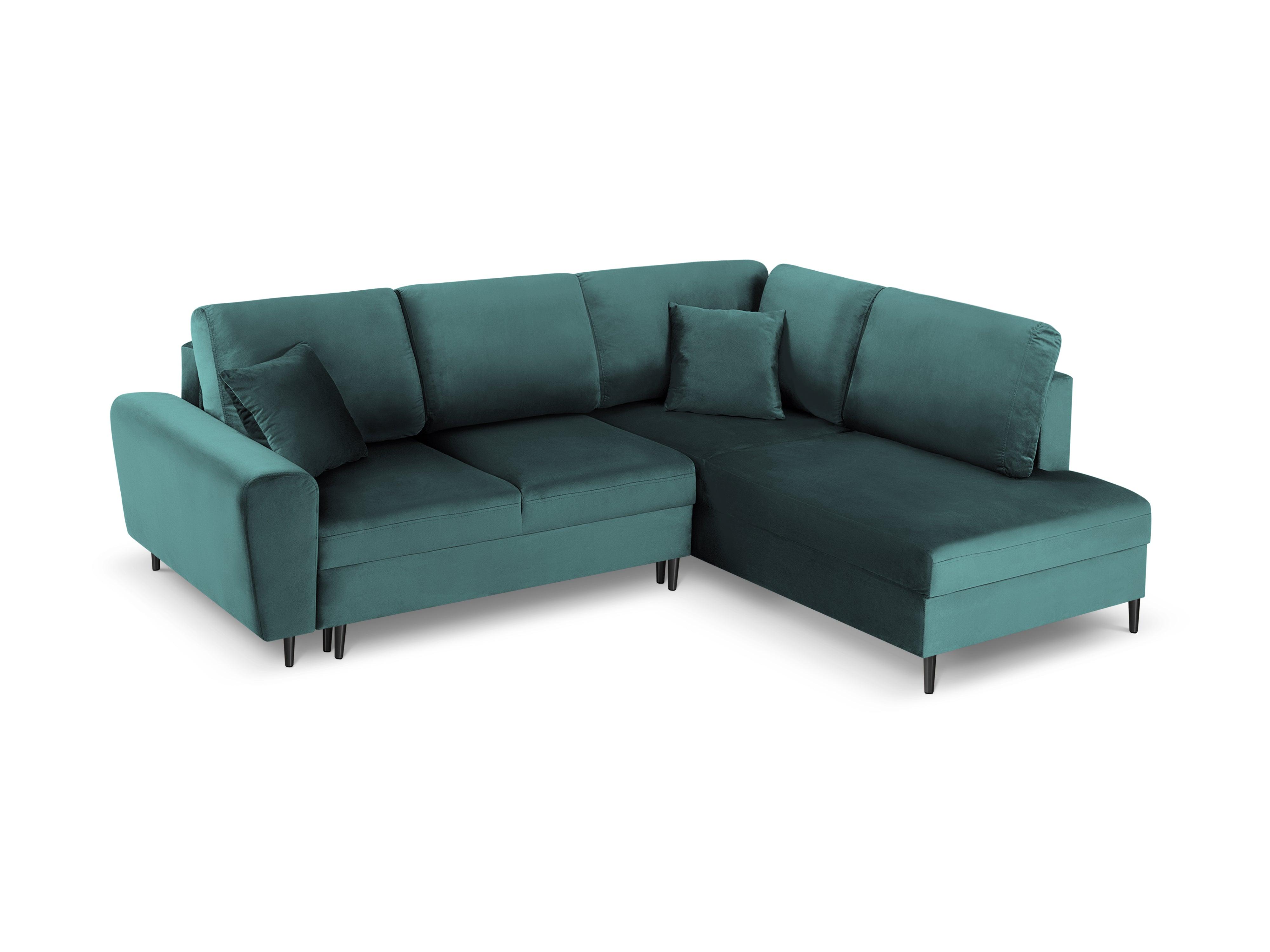 Rohová sedačka pre 5 osôb pravostranná s funkciou spania KYOTO petrol s čiernym podstavcom