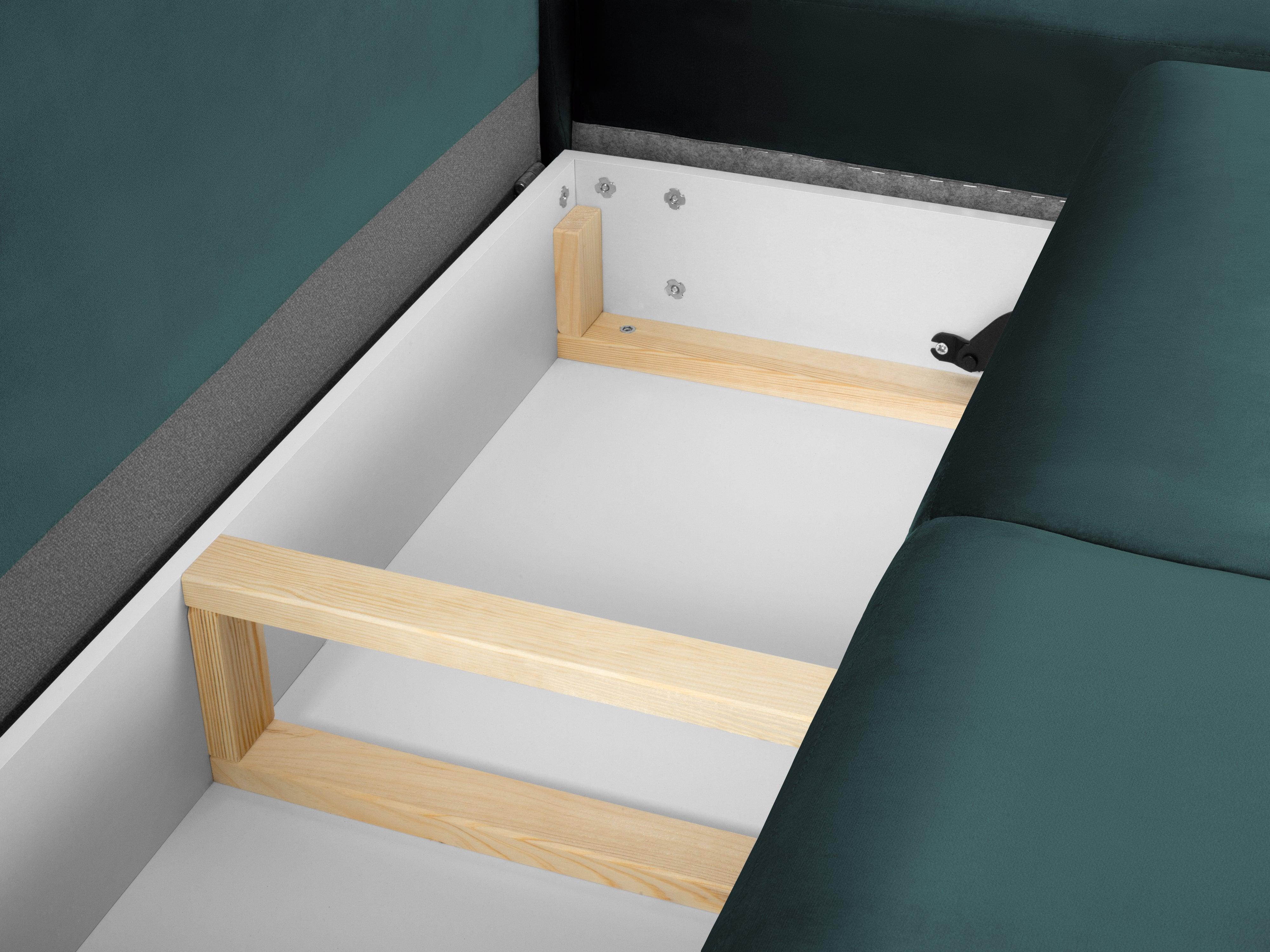Rohový gauč nielenže očarí vzhľadom, ale je aj funkčným doplnkom do útulného obývacieho pokoja. V priebehu chvíle sa môže premeniť na pohodlnú posteľ s praktickým úložným priestorom na posteľnú bielizeň. Je to ideálne riešenie pre nečakaných hostí alebo multifunkčné miestnosti. Pozeranie obľúbeného seriálu v rodinnej spoločnosti alebo popoludňajší spánok po náročnom dni nadobudnú úplne nový rozmer s takým pohodlným miestom na oddych.