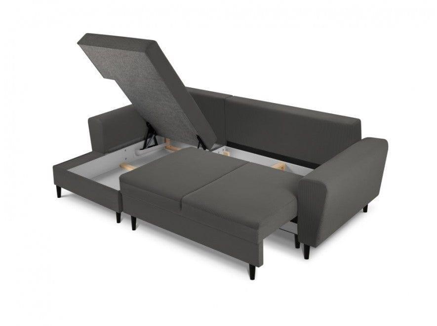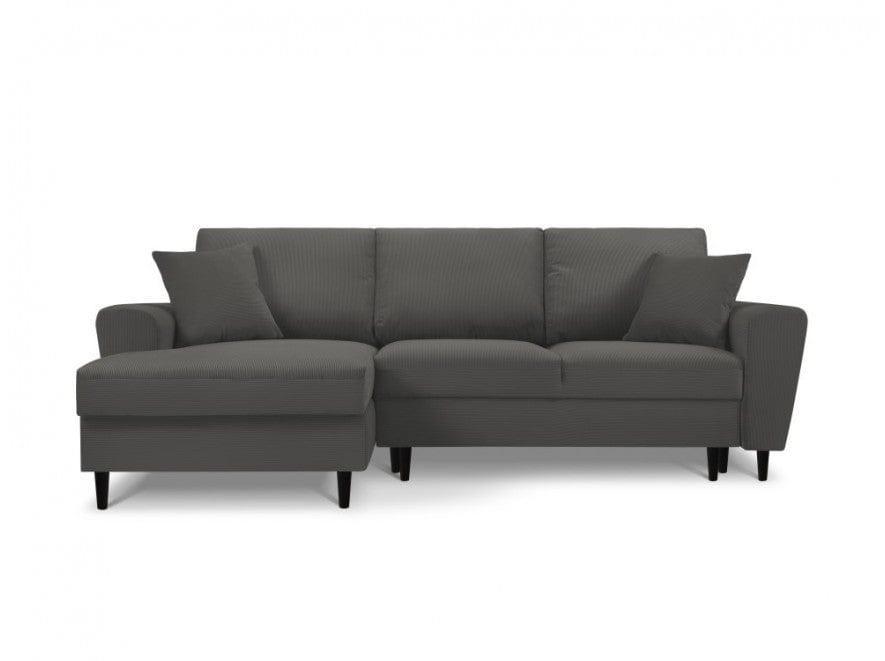 Šedý ľavostranný rohový gauč z kordu s funkciou spania KYOTO