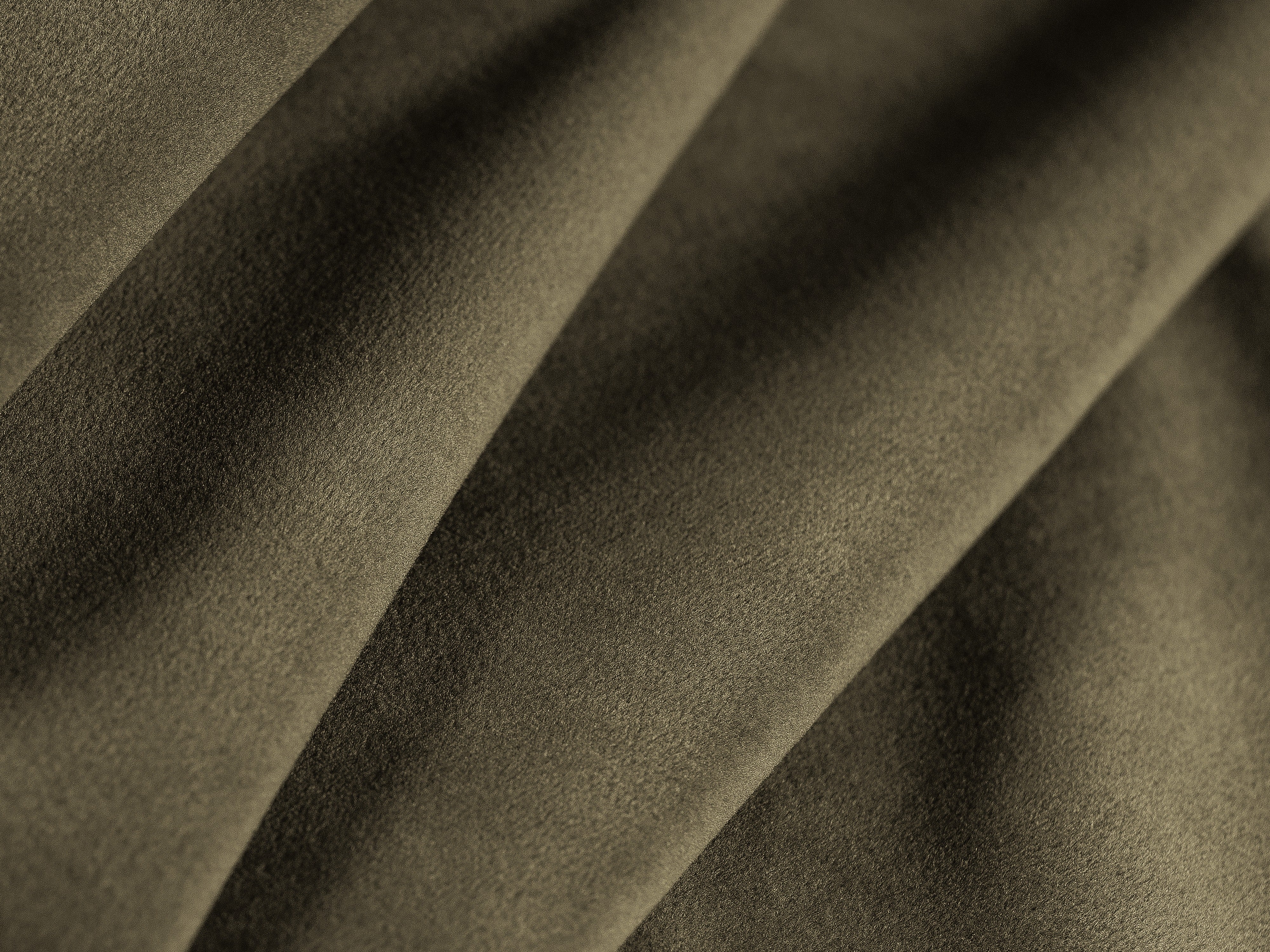 Materiały: Welur (Bluvel) - jedwabista i niezwykle miękka w dotyku tkanina tapicerska o delikatnym połysku doskonale imitująca aksamit. Bardzo odporna na ścieranie, co znacznie zmniejsza ryzyko uszkodzenia (test Martindale’a: 50 000, 320 g/m², skład: 100% poliester). Ze względu na dłuższe włosie odczucie percepcji koloru może sie zmieniać w zależności od kąta padania światła