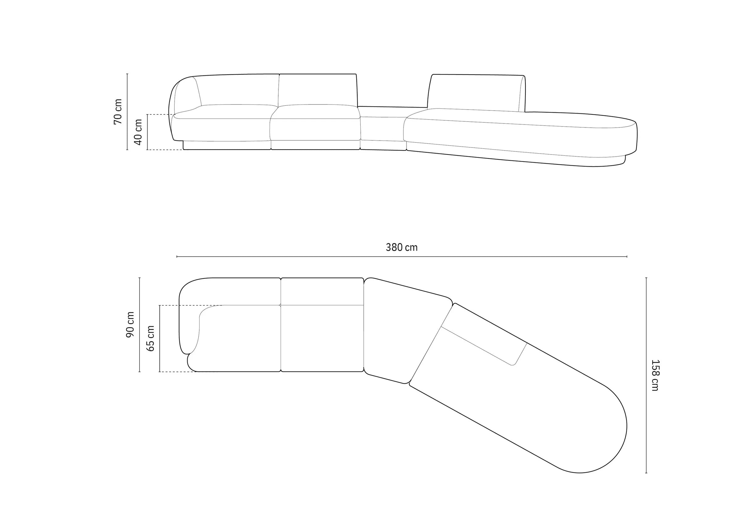 Modulový rohový gauč Miley v 7-miestnej verzii je elegantný návrh, ktorý spája jedinečný dizajn s moderným komfortom. Jeho minimalistická forma a zaoblené línie dodávajú interiéru rafinovaný charakter, a modulárna konštrukcia umožňuje vytváranie rôznych konfigurácií, prispôsobených priestoru a potrebám používateľov. Elastické vyplnenie so strednou tvrdosťou zabezpečuje ideálnu rovnováhu medzi mäkkosťou a potrebnou oporou.