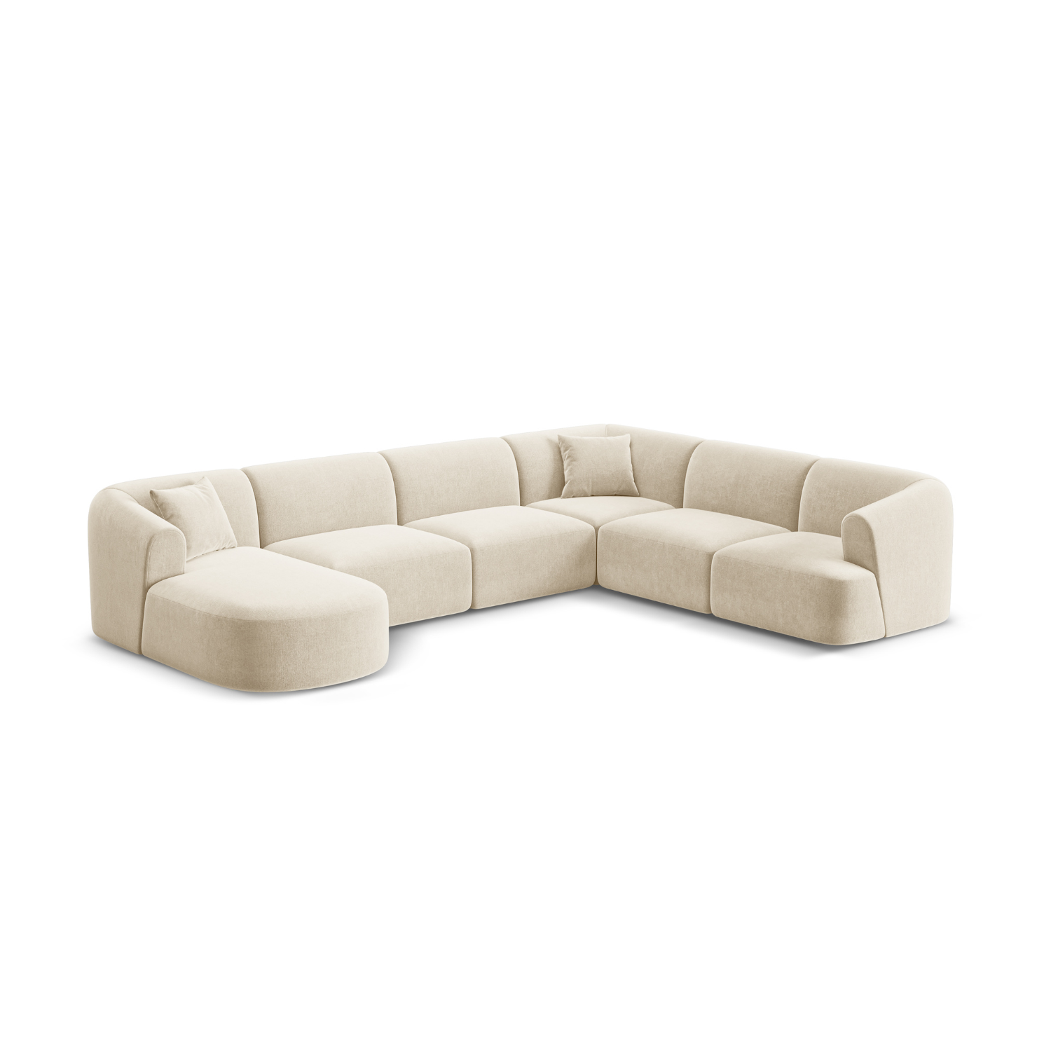Pravostranný rohový sametový panoramatický 7-miestny CAMPI svetlo béžový
