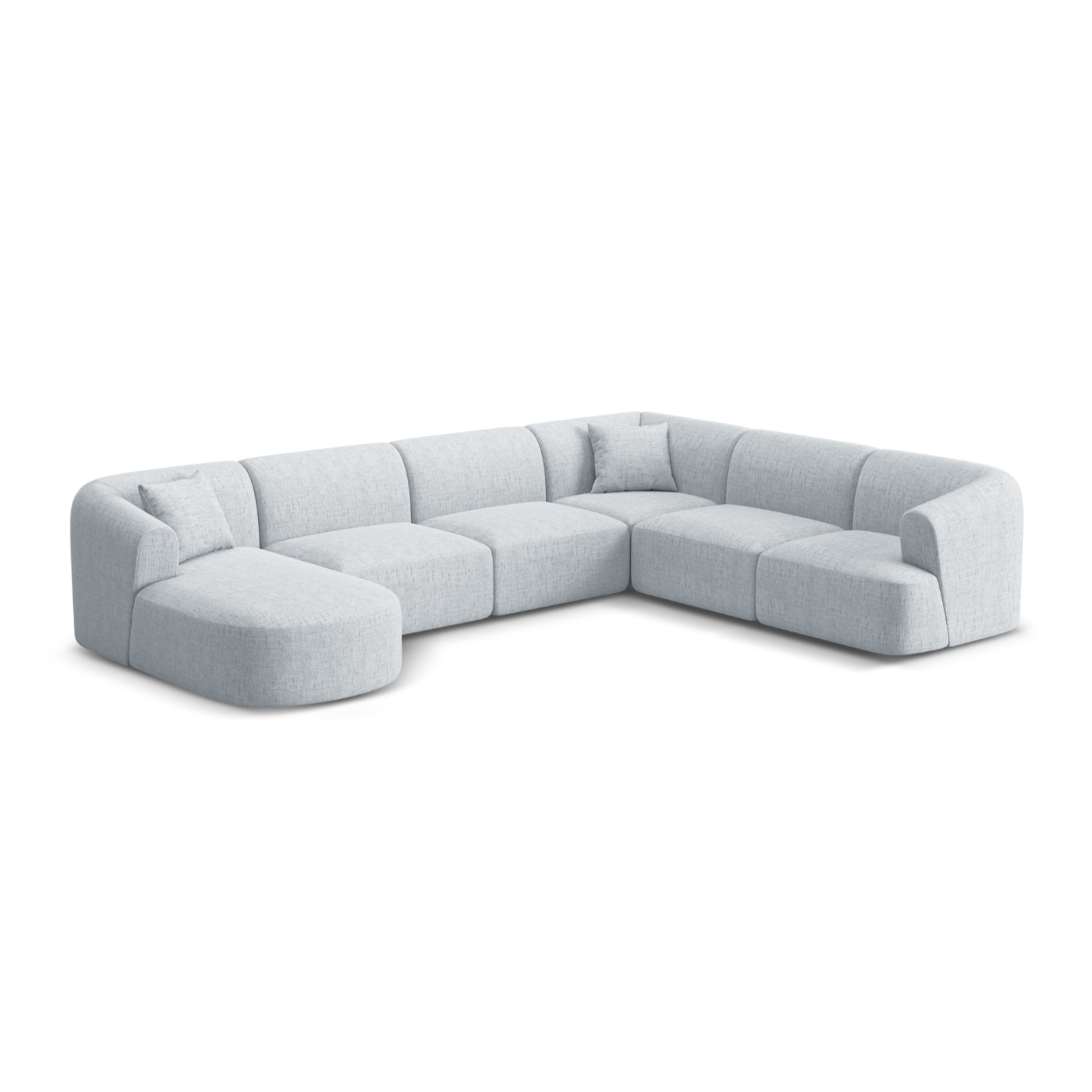 Pravostranný panoramatický rohový gauč pre 7 osôb CAMPI svetlosivý šenil